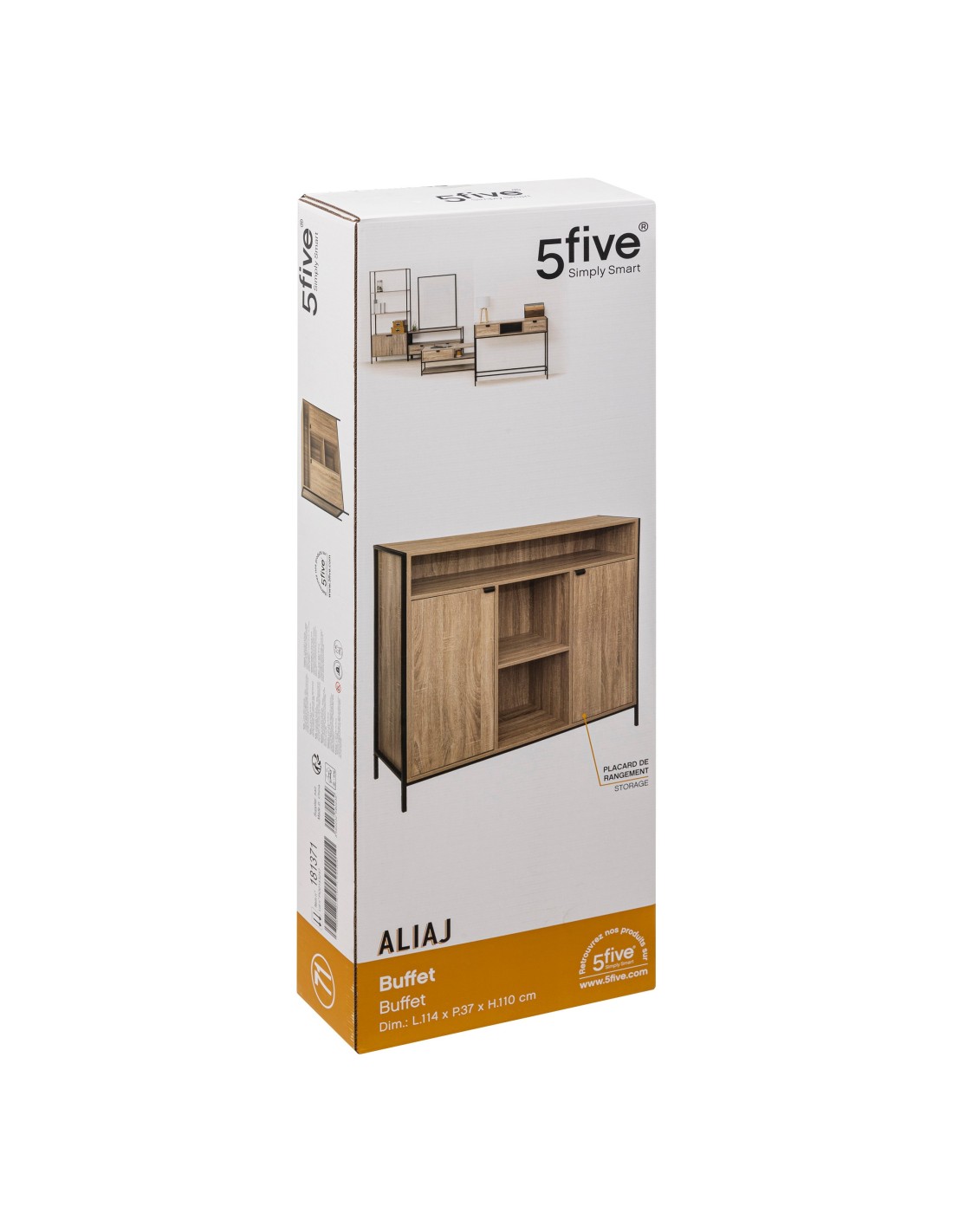 Le Buffet 2 Portes 3 Niches "Aliaj" de la marque Five est un meuble de rangement exceptionnel, conçu pour allier élégance, fonctionnalité et durabilité. C'est une pièce maîtresse parfaite pour n'importe quelle salle à manger, salon ou espace de travail, apportant une touche de sophistication moderne tout en offrant une solution de rangement pratique et spacieuse. Ce buffet se distingue par sa structure bien pensée, comprenant deux portes et trois niches ouvertes. Cette combinaison offre un équilibre idéal entre espace de rangement dissimulé et affichage ouvert. Derrière les portes, vous trouverez un vaste espace pour ranger de manière ordonnée vaisselle, linge de table, ou même des documents et des fournitures de bureau, les gardant à l'abri de la poussière et du désordre visuel. Les niches ouvertes, quant à elles, sont parfaites pour exposer des livres, des objets d'art, des plantes ou des cadres photos, permettant ainsi de personnaliser votre espace avec vos objets favoris.