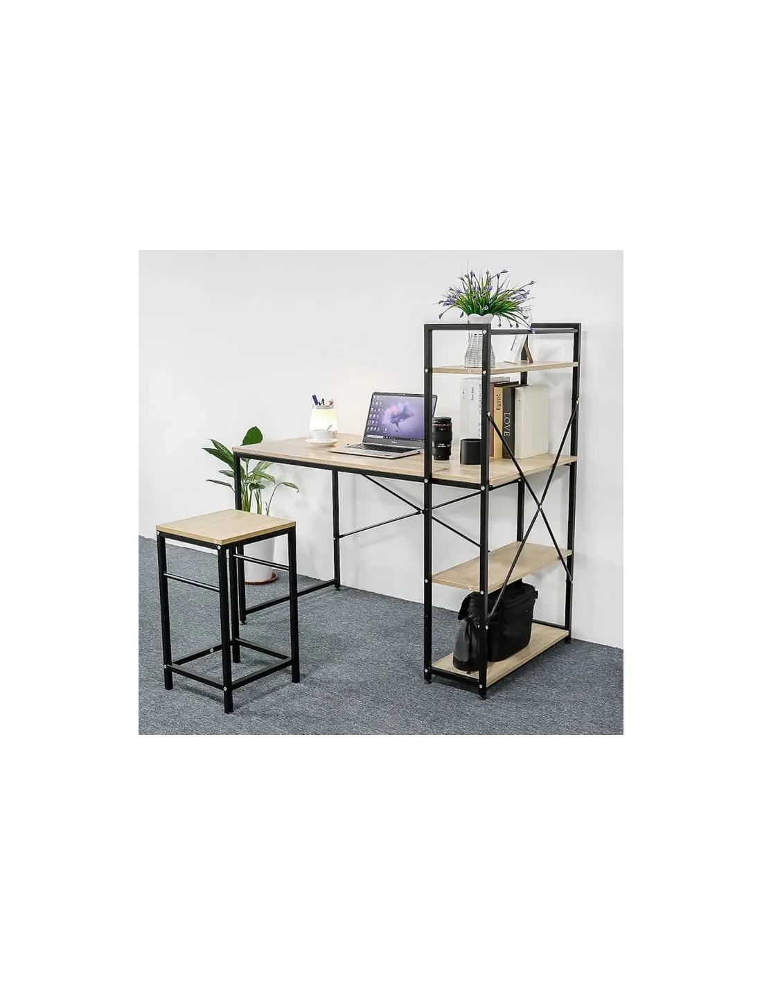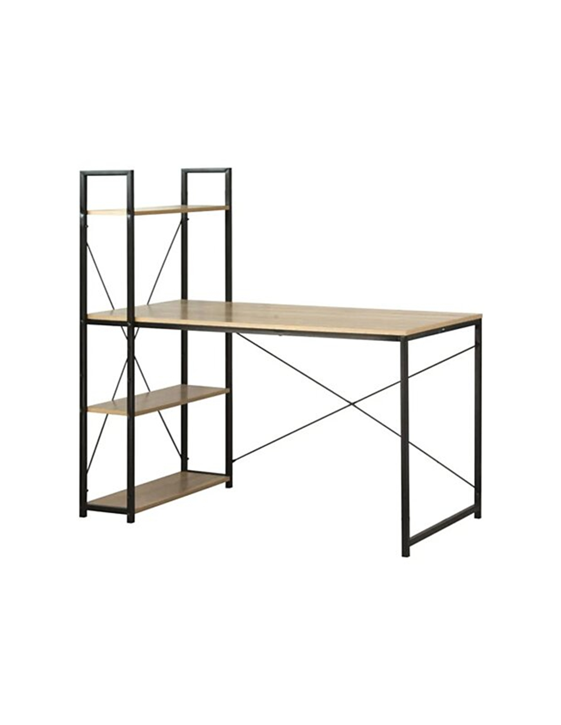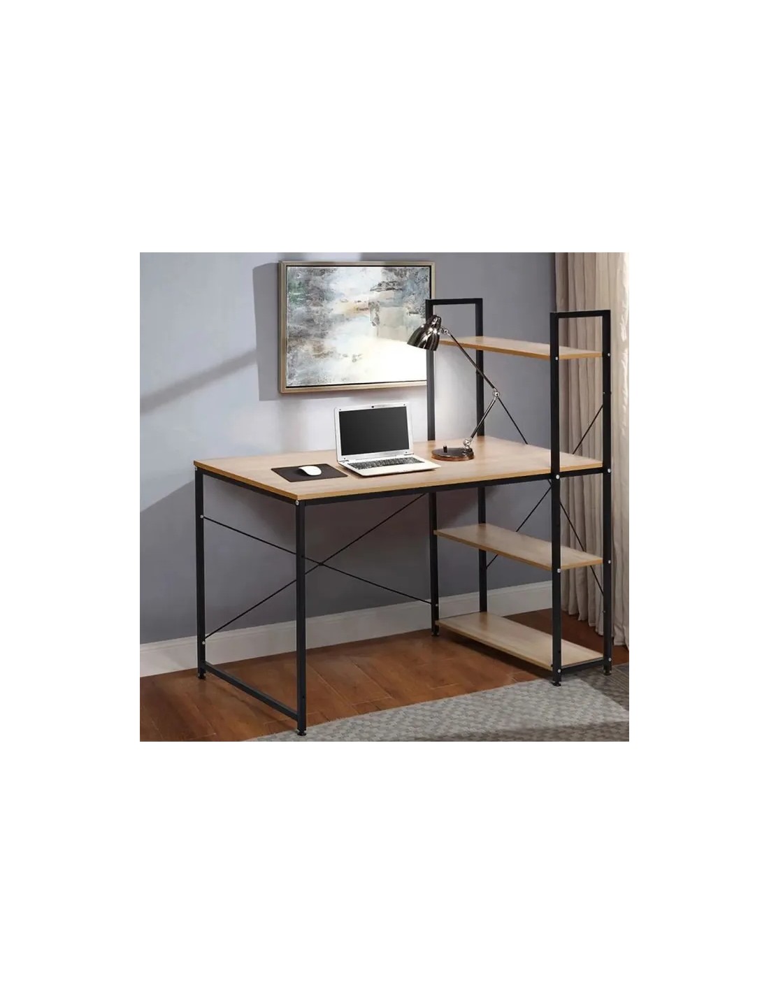 Créez un espace de travail à la fois fonctionnel, organisé et élégant avec le Bureau avec Étagère 3 Niveaux Colorado signé Five. Conçu pour optimiser les petits et grands espaces, ce bureau allie praticité, design moderne et solutions de rangement intelligentes pour vous accompagner au quotidien, que ce soit pour le télétravail, les études ou vos projets créatifs. Avec son mélange de métal noir et de plateaux effet bois, ce bureau adopte un style industriel tendance tout en restant sobre et épuré. Il s’intègre parfaitement dans un salon, un bureau ou même une chambre tout en apportant une touche contemporaine et chaleureuse. La large surface du plateau offre un espace confortable pour accueillir ordinateur, documents et fournitures tout en laissant suffisamment de place pour travailler efficacement. Les trois étagères latérales intégrées permettent de garder vos essentiels à portée de main : livres, dossiers, imprimante ou éléments décoratifs trouvent facilement leur place, tout en libérant l’espace de travail principal. La combinaison du métal résistant et des plateaux en bois composite garantit une excellente solidité et une grande durabilité, même en cas d’utilisation intensive. Les pieds antidérapants assurent une parfaite stabilité du bureau.