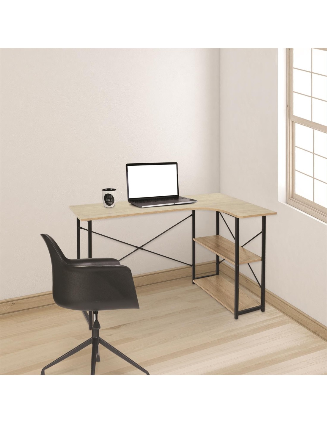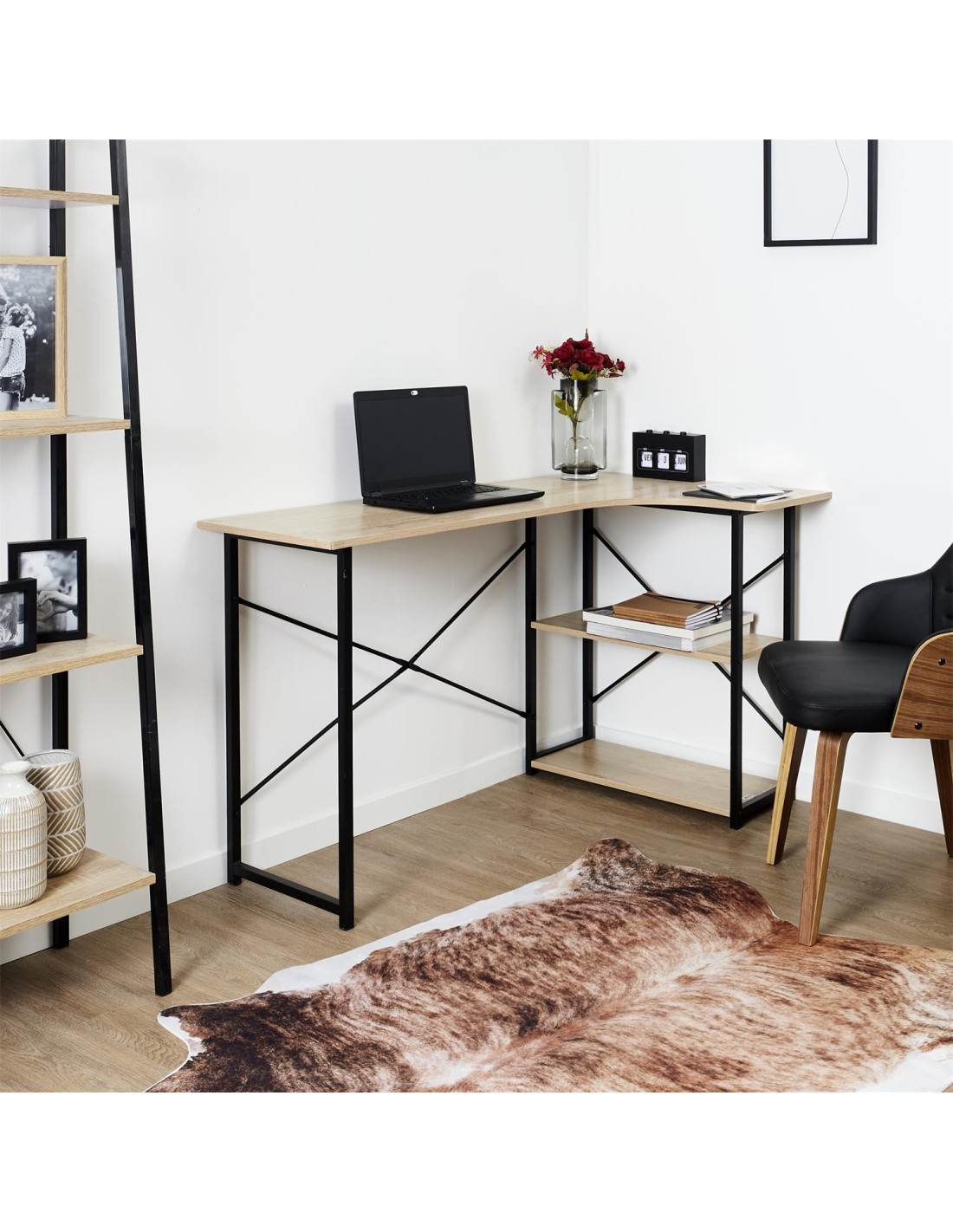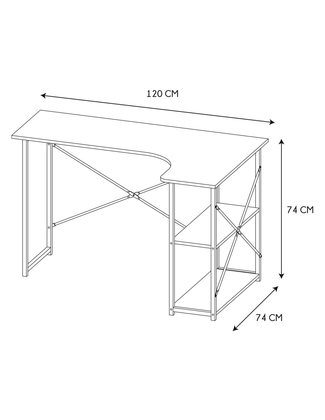 Ce bureau d'angle sera parfait pour organiser un espace de travail efficace et peu encombrant ! Le charme et l'ingéniosité de ce bureau va vous métamorphoser, vous n'aurez plus envie de le quitter ! Pour le télétravail ou les devoirs, optez pour ce bureau Job ! Placez-le dans votre chambre ou votre salon, vous allez l'adorer ! Ultra pratique, profitez de ces étagères pour ranger vos petits effets personnels.
