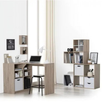 Bureau compatible rangements paniers mix n modul. Le caisson peut se placer au choix à droite ou à gauche. Ce bureau vous offre un espace de travail idéal pour votre bureau ou la chambre de votre enfant. Grâce à son plan de travail modulable, ce bureau s'adapte à tout type d'espace ; installé dans un angle pour un gain de place optimal, vous pourrez placer les étagères d'un côté ou de l'autre selon vos besoins ou bien déplier le bureau en entier le long d'un mur. Le meuble intégré offre de nombreux espaces de rangement afin de bien organiser et ranger ses affaires, garder à portée de main les fournitures scolaires dans le tiroir, et trier des livres, des classeurs et autres documents sur les étagères.