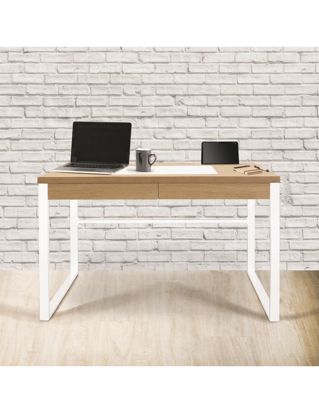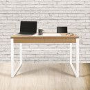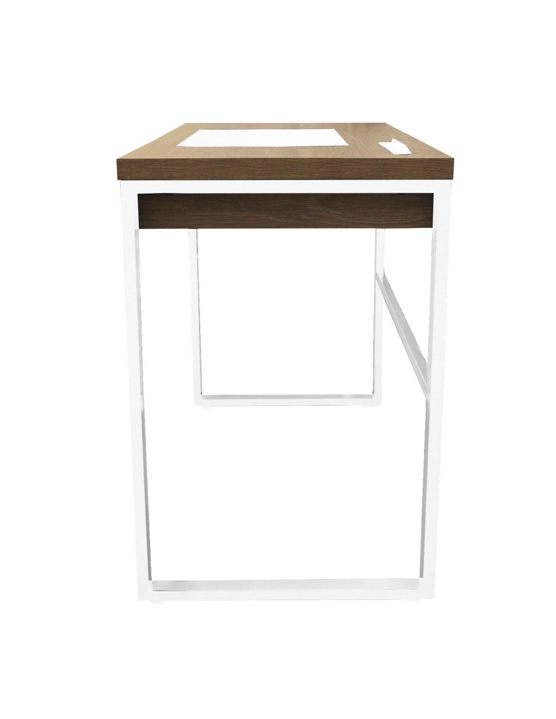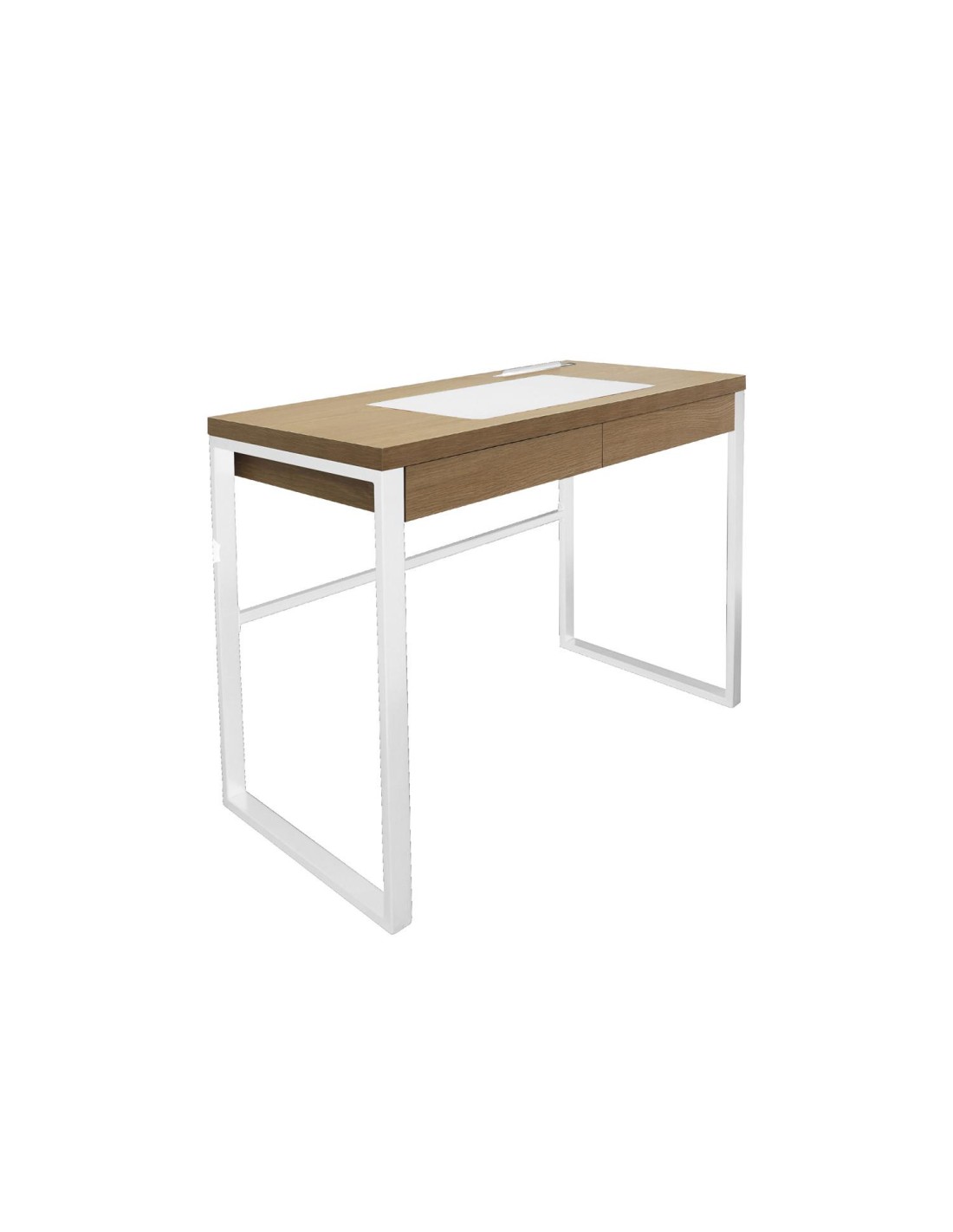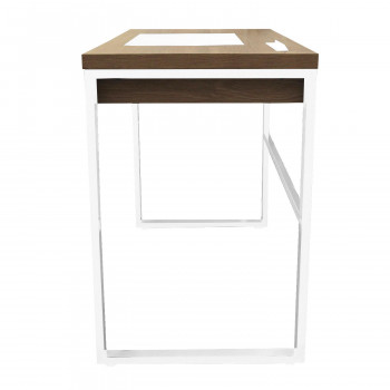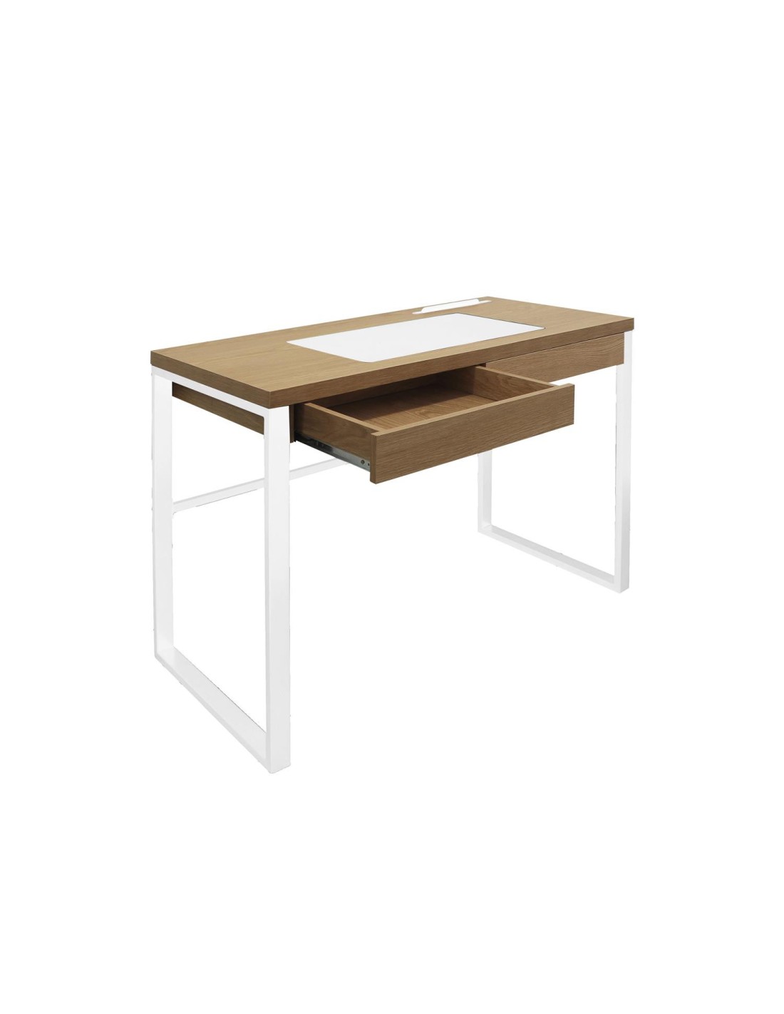 Le charme et l'ingéniosité de ce bureau réalisé en bois et en métal va vous métamorphoser, vous n'aurez plus envie de le quitter ! Il est parfaitement organisé pour permettre un travail efficace dans de bonnes conditions à domicile. Vous aurez suffisamment de place pour vos jambes, accès à un tiroir, à un sous-main intégré ainsi que de l'espace pour poser aisément votre matériel électronique.