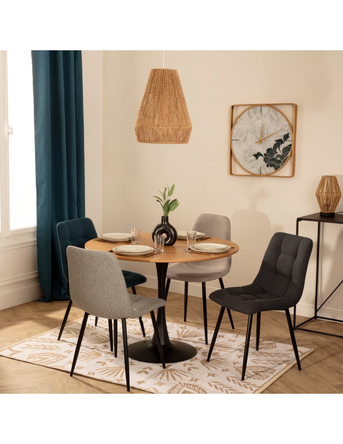 Rehaussez l'élégance de votre espace repas avec la Chaise de Table en Tissu Sirac Gris Ardoise d'Atmosphera. Cette chaise allie subtilement sophistication et confort, offrant une expérience assise inégalée tout en enrichissant votre intérieur avec son design contemporain et sa nuance neutre chic. Avec son fini gris ardoise élégant et son cadre épuré, cette chaise apporte une touche de modernité discrète à tout environnement, qu'il soit formel ou décontracté. Assise et dossier sont généreusement rembourrés pour offrir un confort optimal lors des repas prolongés, des discussions en soirée ou des sessions de travail intensives à la maison. Idéale pour la salle à manger, cette chaise s'intègre également parfaitement dans un bureau ou une chambre, offrant des options de seating flexibles où le style ne compromet jamais le confort. Le ton gris ardoise s'harmonise avec une multitude de palettes de couleurs, permettant à cette chaise de s'adapter à tout décor existant ou de servir de base pour une nouvelle conception de l'espace. Compacte et légère, elle peut être facilement repositionnée ou déplacée pour répondre à divers besoins, que ce soit autour de la table de salle à manger ou comme pièce d'appoint dans un coin sous-utilisé de la maison.