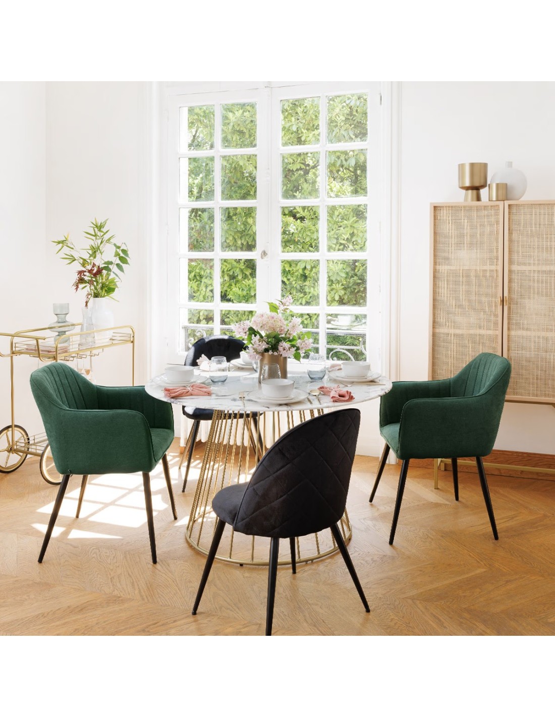 Découvrez la Chaise de Table en Velours Noire de la marque Atmosphera, l'alliance parfaite entre le confort somptueux du velours et l'élégance intemporelle du design, pour transformer votre salle à manger en un espace de luxe et de raffinement. La Chaise de Table en Velours Noire incarne le minimalisme chic avec son design contemporain et son revêtement en velours noir profond. Elle ajoute une touche de sophistication à n'importe quelle table à manger. Le velours doux et luxueux offre un confort inégalé. L'assise généreuse et le dossier ergonomique soutiennent votre dos pour des repas agréables et des heures de convivialité. Cette chaise s'intègre harmonieusement dans divers styles de décoration, du moderne au classique. Elle peut être utilisée dans la salle à manger, la cuisine, ou même comme chaise d'appoint dans d'autres pièces de la maison.