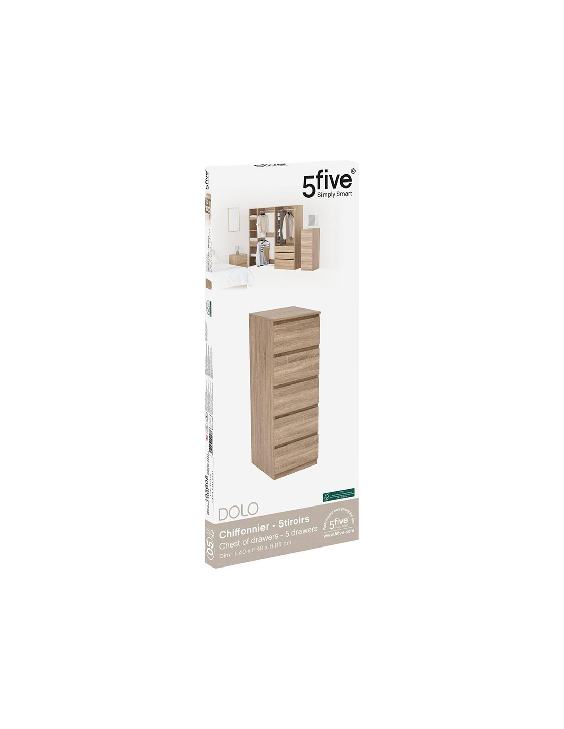 Caractéristiques sur le Chiffonnier 5 tiroirs Dolo Beige Five :