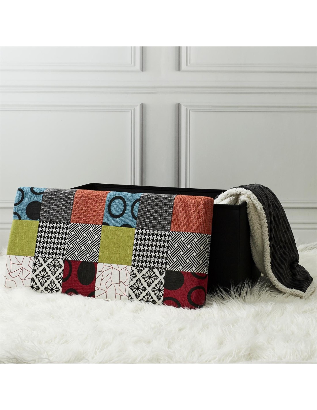 Coffre banc pliable Patchwork.Assise complémentaire ou rangement malin, ce banc aux multiples couleurs a tout pour vous plaire.