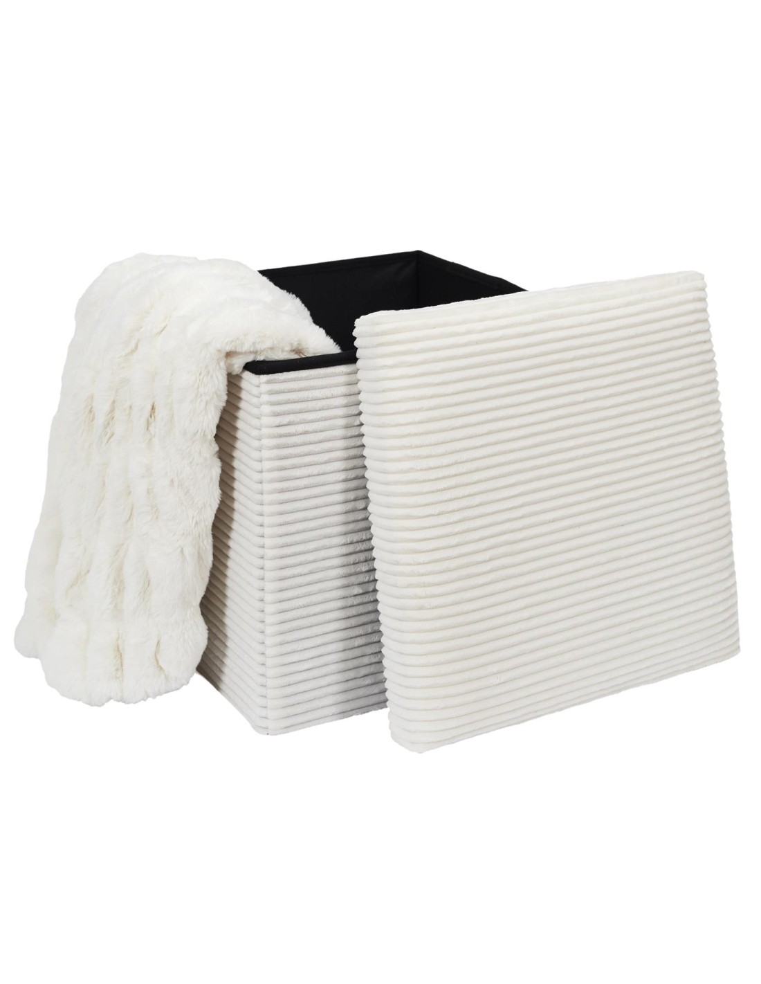 Caractéristiques sur le Coffre Pouf Pliable Côtelé Scott Beige Home Deco Factory :