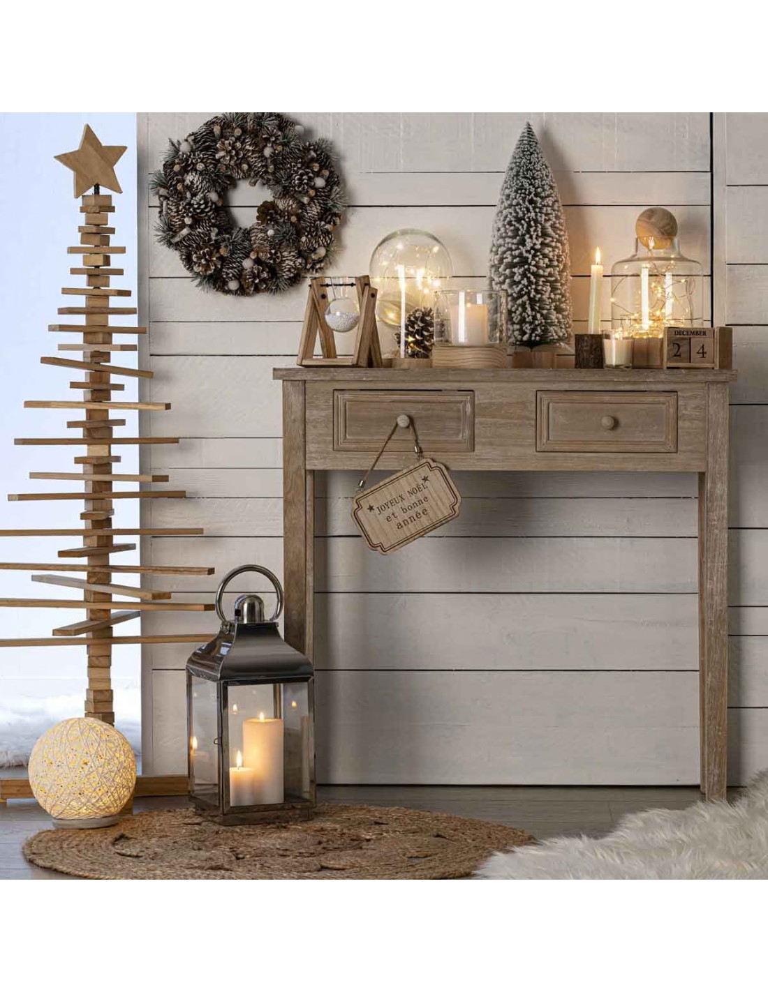 Caractéristiques sur la Console Charme En Bois Avec 2 Tiroirs Beige Atmosphera :