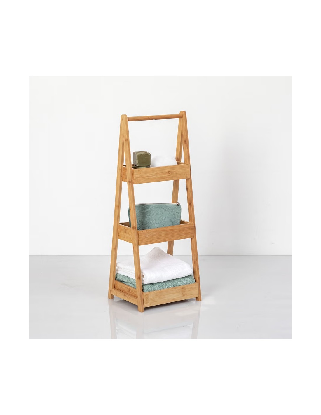 Ce meuble en bambou peut très facilement trouver sa place dans votre salle de bain grâce à ces 3 étagères.