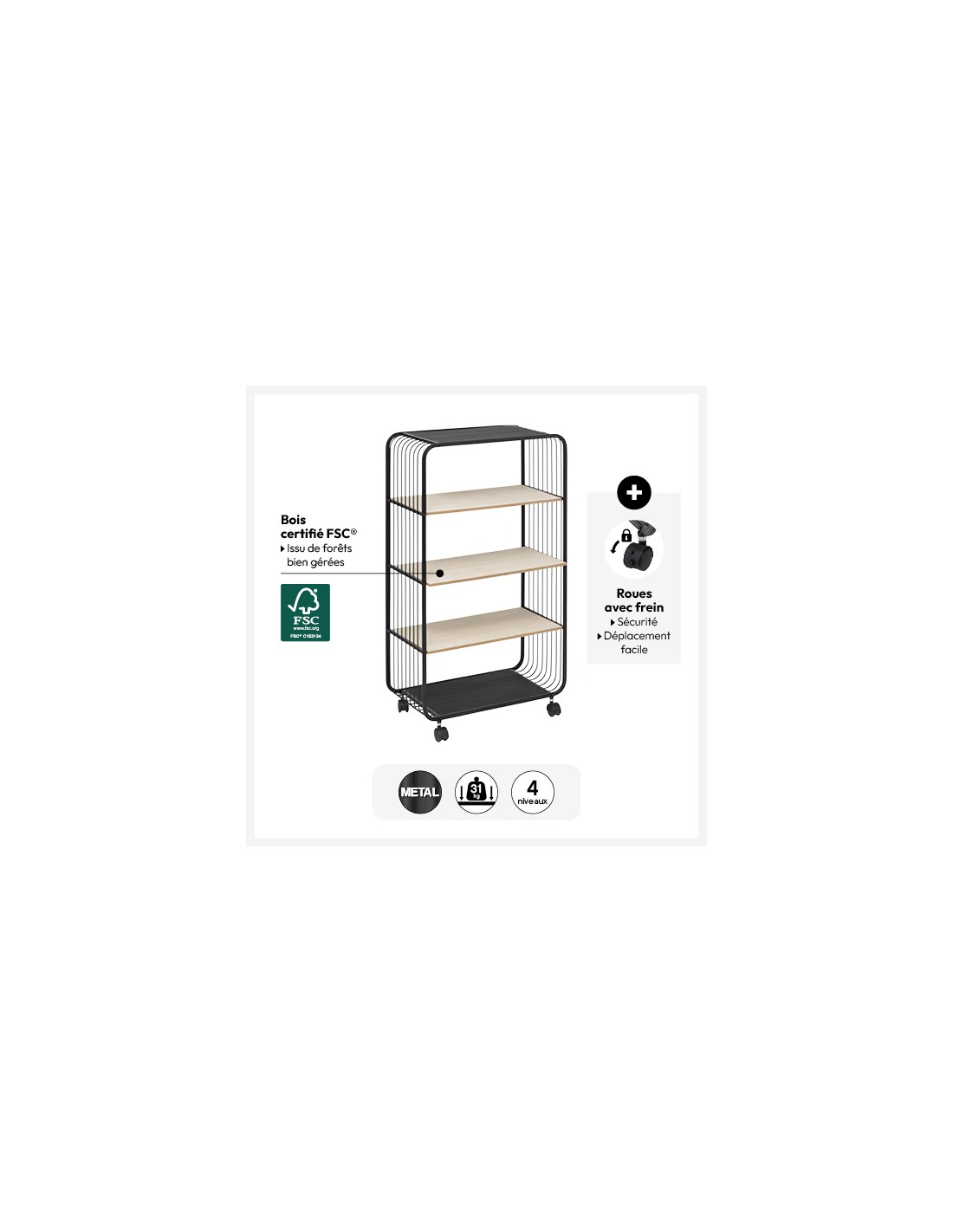Caractéristiques sur l’Étagère 4 Cases Avec Roulettes Noir Five :