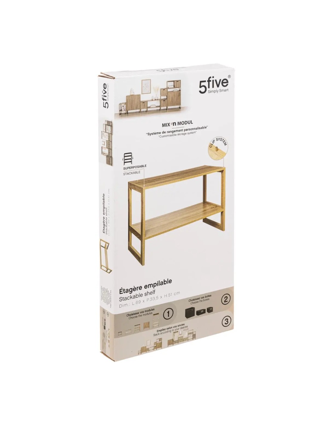 Caractéristiques sur l’Étagère Empilable 2 Cases Naturel Five :