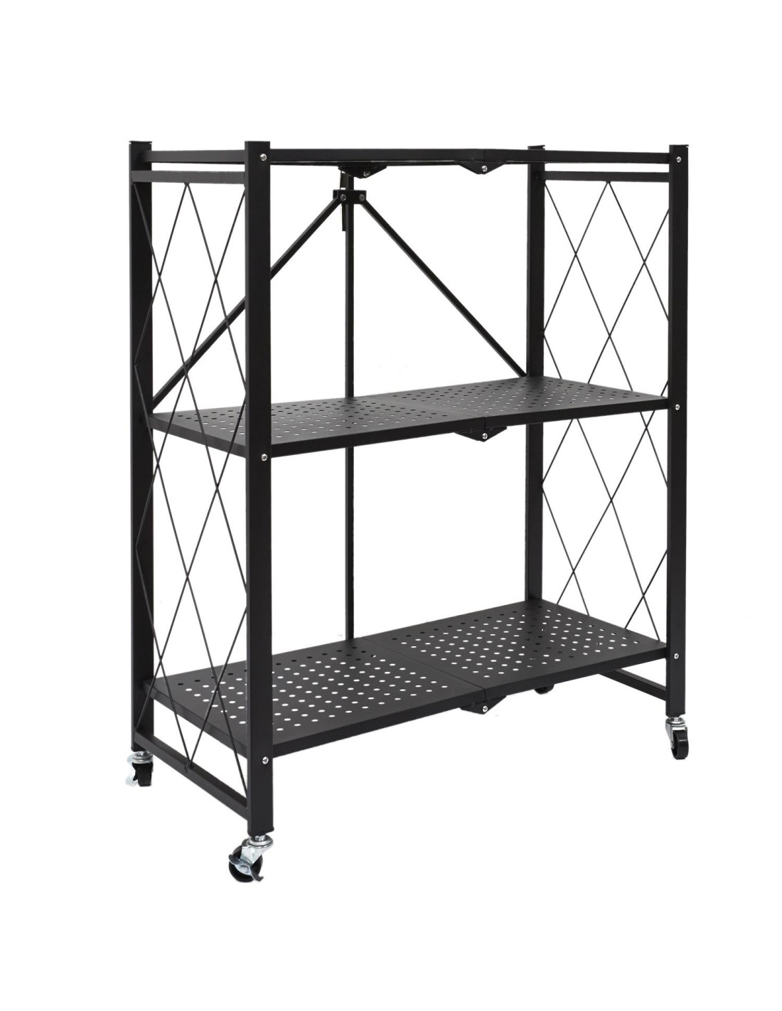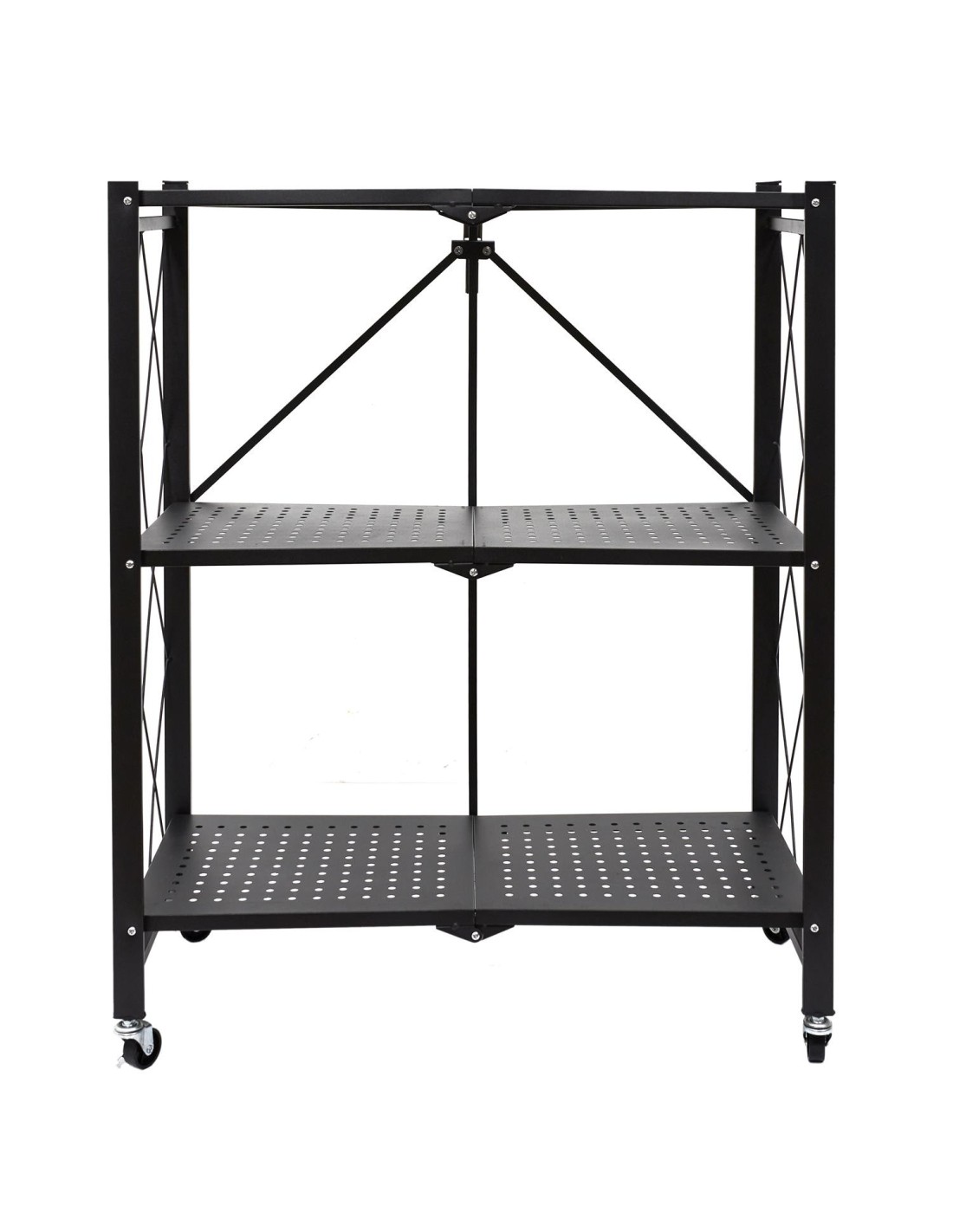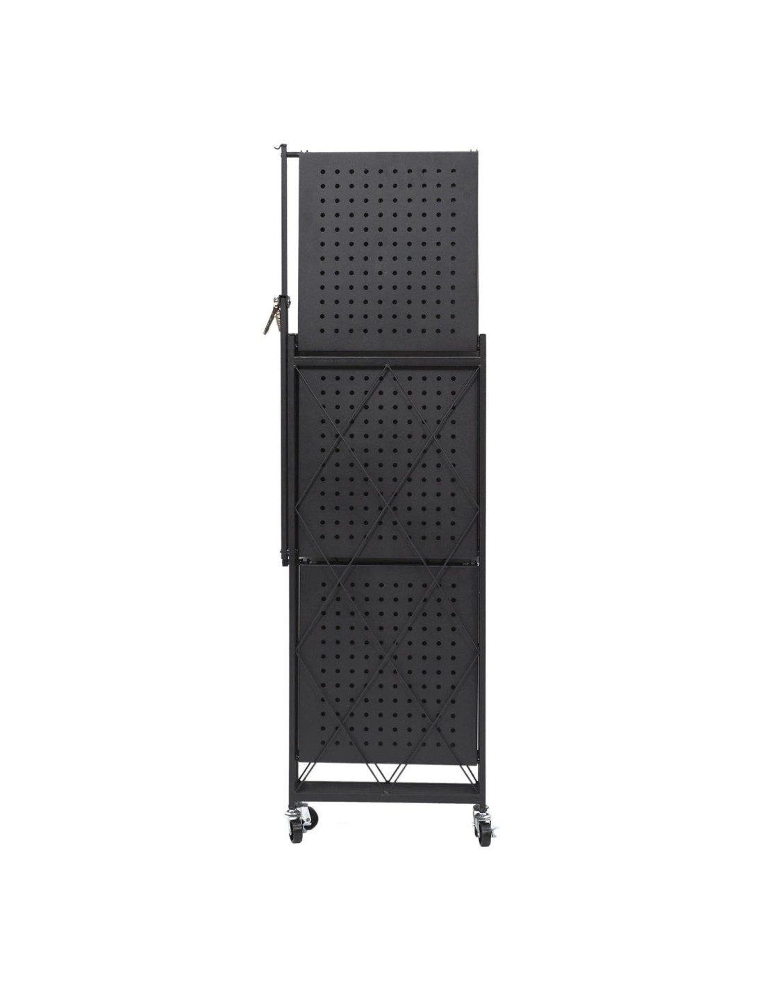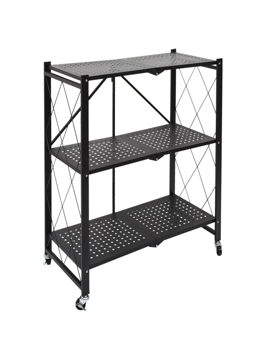 Une étagère pliante, cette étagère peut être utilisée non seulement dans la cuisine, mais aussi dans toute autre pièce où une grande quantité d'objets doit être stockée. Sa conception à trois niveaux comprend des étagères ouvertes qui peuvent accueillir des articles lourds comme des livres et des bouteilles de vin en carton. L'étagère est fabriquée en métal durable avec une finition noire mate qui s'harmonisera avec n'importe quel décor.
