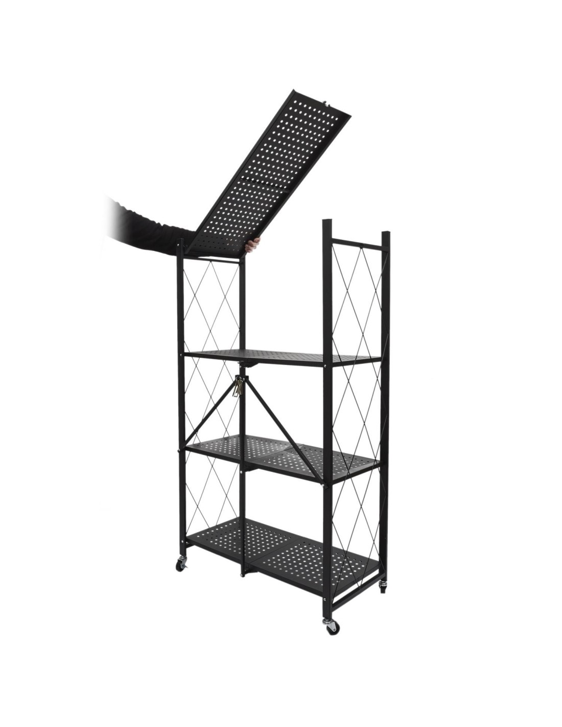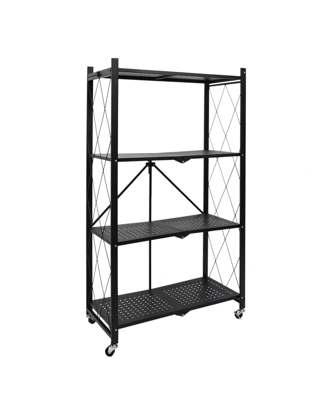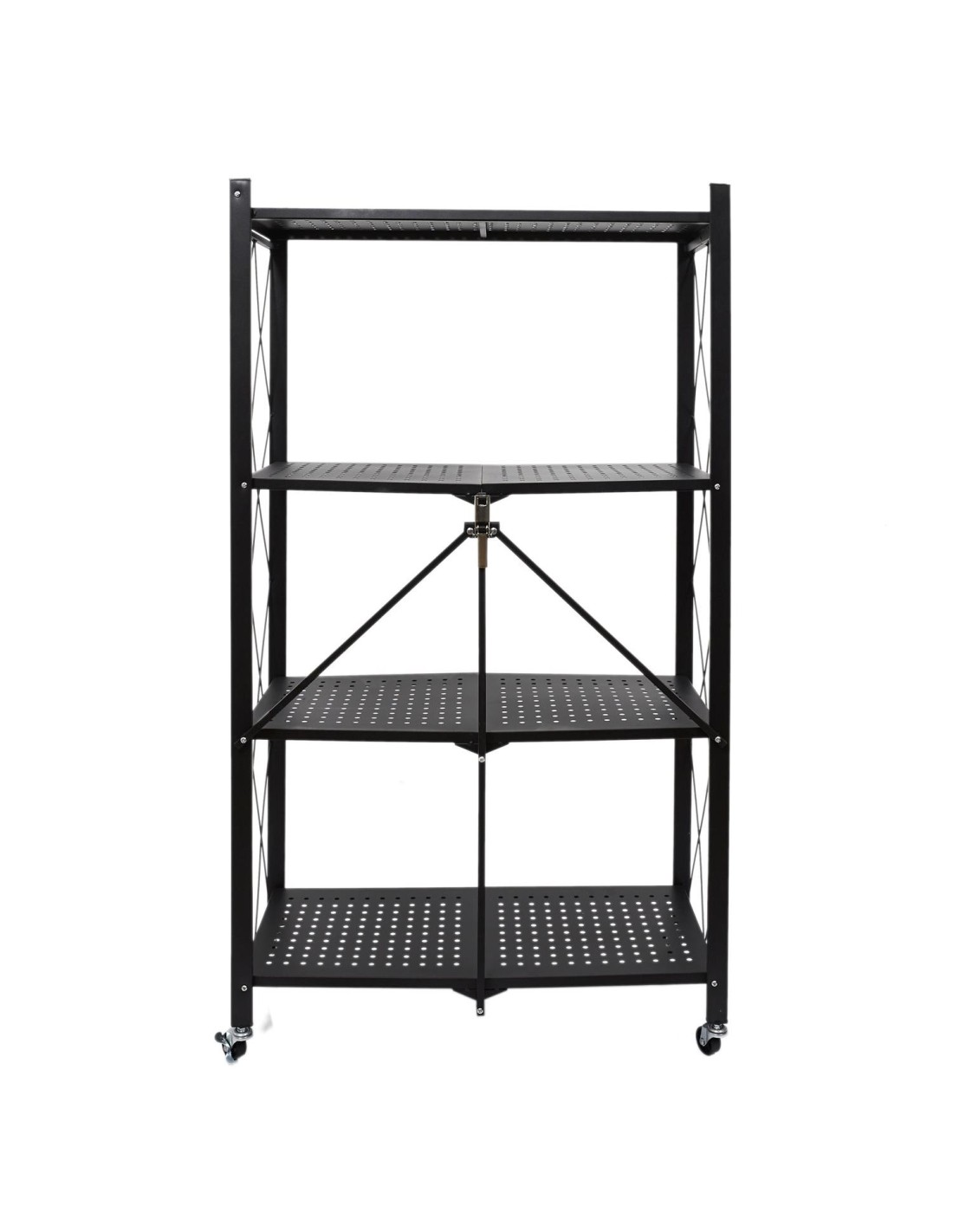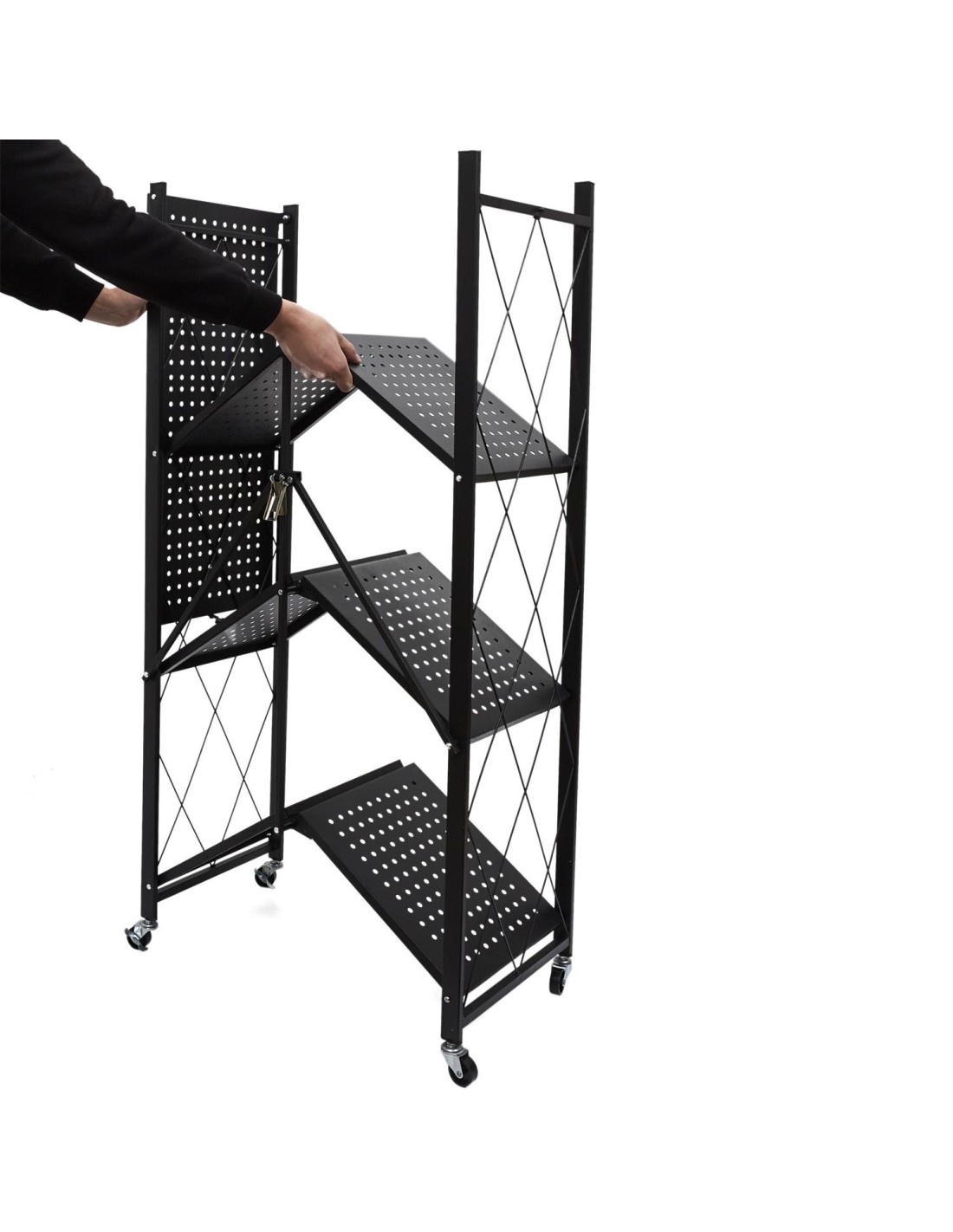 Cette étagère pliante est fabriquée en métal et dispose de 4 roues pour la déplacer facilement. Elle comporte 4 niveaux, chacun ayant sa propre fonction, ce qui vous permet de ranger beaucoup de choses. Cette étagère métallique à 4 niveaux est facile à déplacer et à plier, ce qui permet de la ranger rapidement lorsqu'elle n'est pas utilisée. Accessoire pratique et utile pour toutes les pièces, elle est équipée de 4 roues pour faciliter son transport. Pratique, utile et fabriquée avec des matériaux de haute qualité, cette étagère pliante peut être utilisée de multiples façons : comme support pour les livres de cuisine, les magazines, les ustensiles de cuisine ou les objets à ranger. Cette étagère pliante est disponible en noir et comporte 4 niveaux avec une structure métallique. Les roulettes sur le dessus permettent de la déplacer facilement.