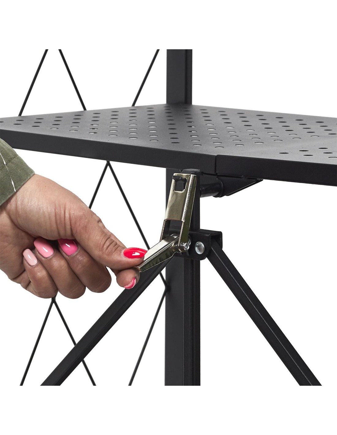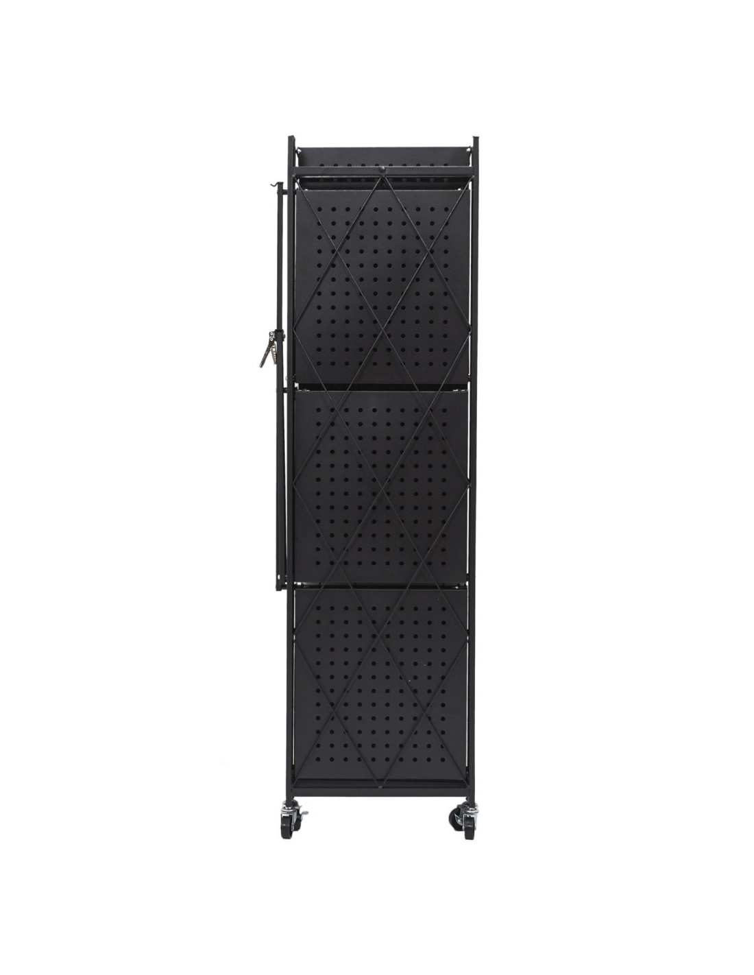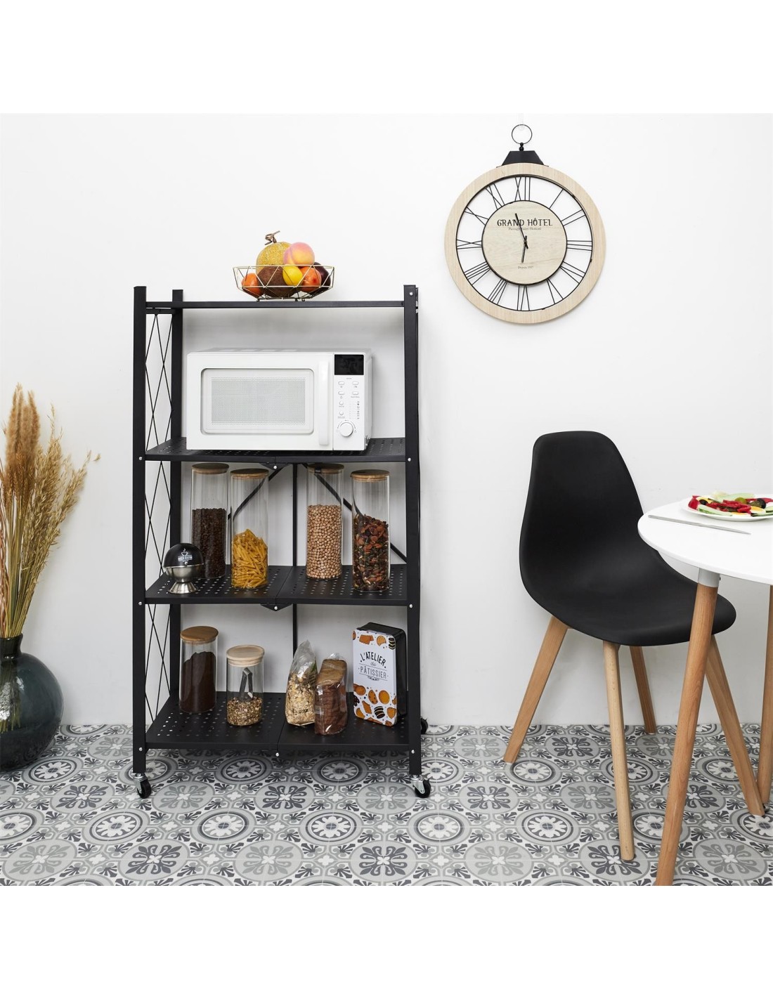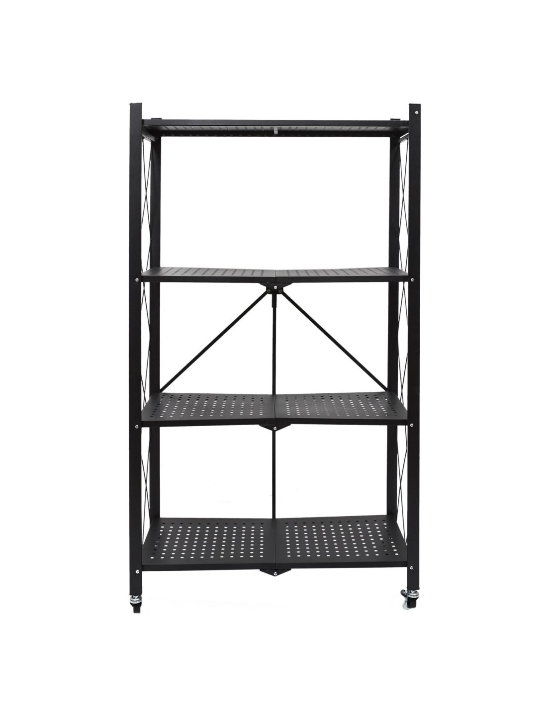 Cette étagère pliante est fabriquée en métal et dispose de 4 roues pour la déplacer facilement. Elle comporte 4 niveaux, chacun ayant sa propre fonction, ce qui vous permet de ranger beaucoup de choses. Cette étagère métallique à 4 niveaux est facile à déplacer et à plier, ce qui permet de la ranger rapidement lorsqu'elle n'est pas utilisée. Accessoire pratique et utile pour toutes les pièces, elle est équipée de 4 roues pour faciliter son transport. Pratique, utile et fabriquée avec des matériaux de haute qualité, cette étagère pliante peut être utilisée de multiples façons : comme support pour les livres de cuisine, les magazines, les ustensiles de cuisine ou les objets à ranger. Cette étagère pliante est disponible en noir et comporte 4 niveaux avec une structure métallique. Les roulettes sur le dessus permettent de la déplacer facilement.