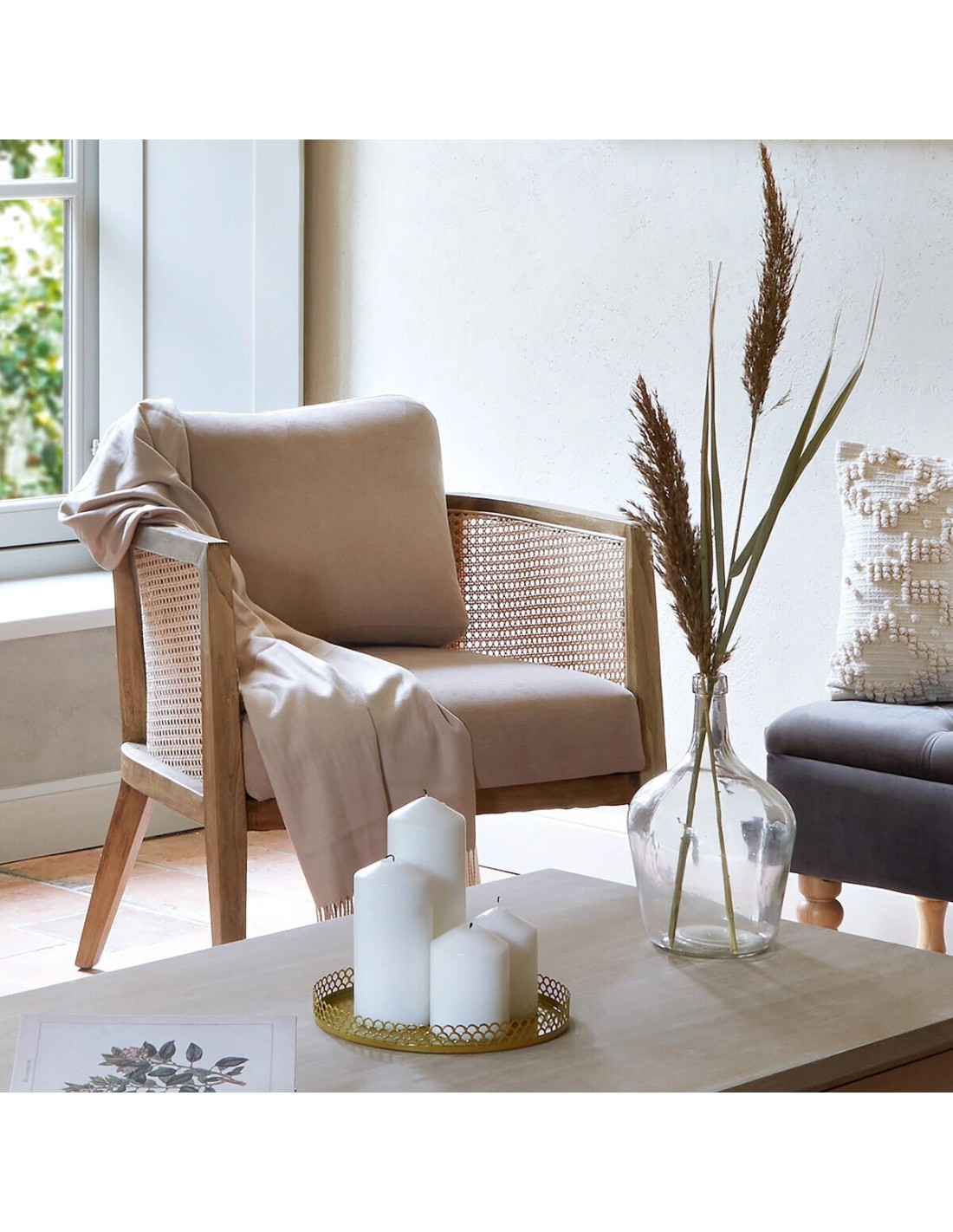 Ce Fauteuil Cannage Koza répond parfaitement à vos besoins de confort et de décoration. Il promet une assise moelleuse, un dossier apaisant et un revêtement très doux. Un mobilier équipé de cannage en rotin à chaque extrémité.