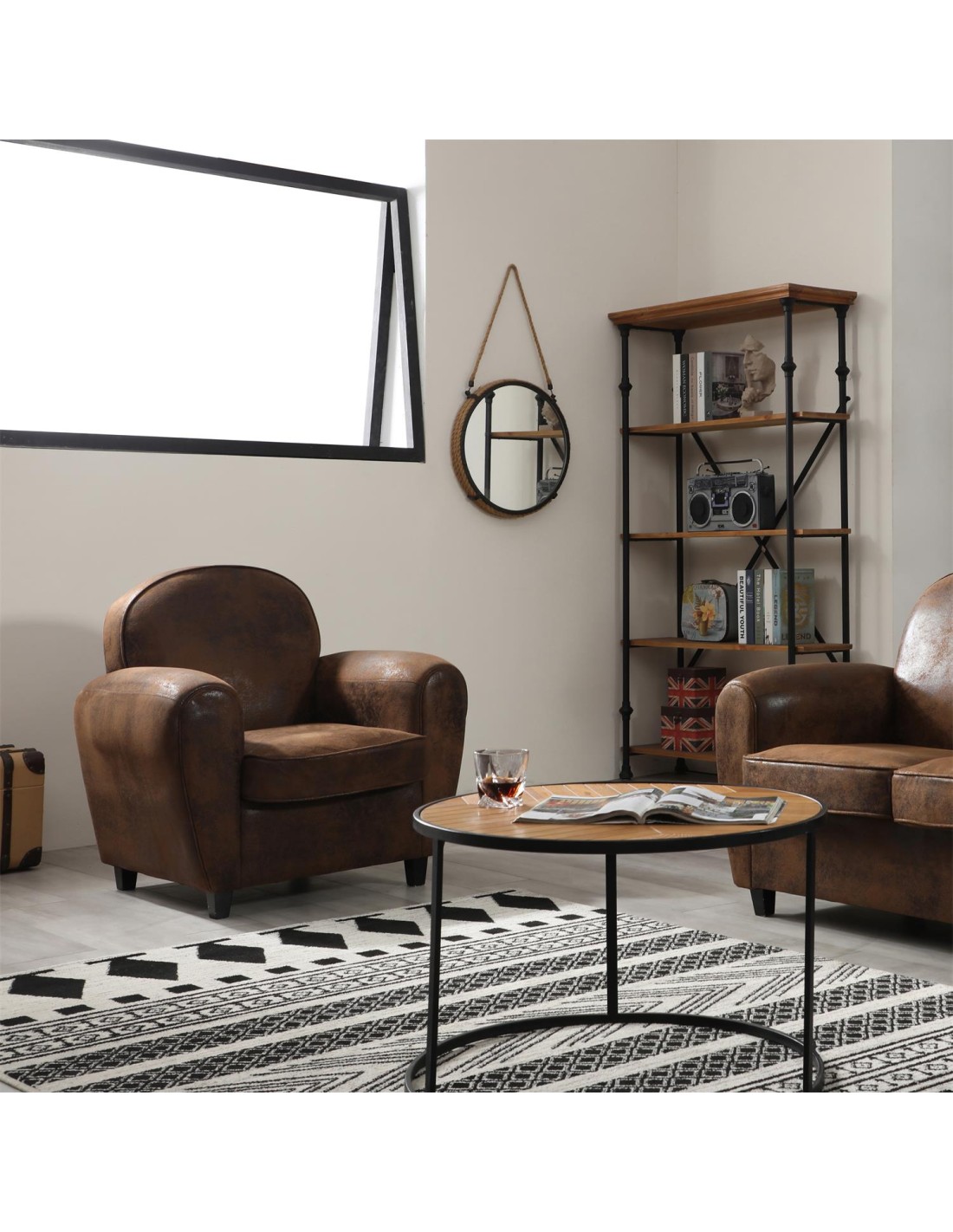 Caractéristiques sur le Fauteuil Club Bistrot Marron Home Deco Factory :
