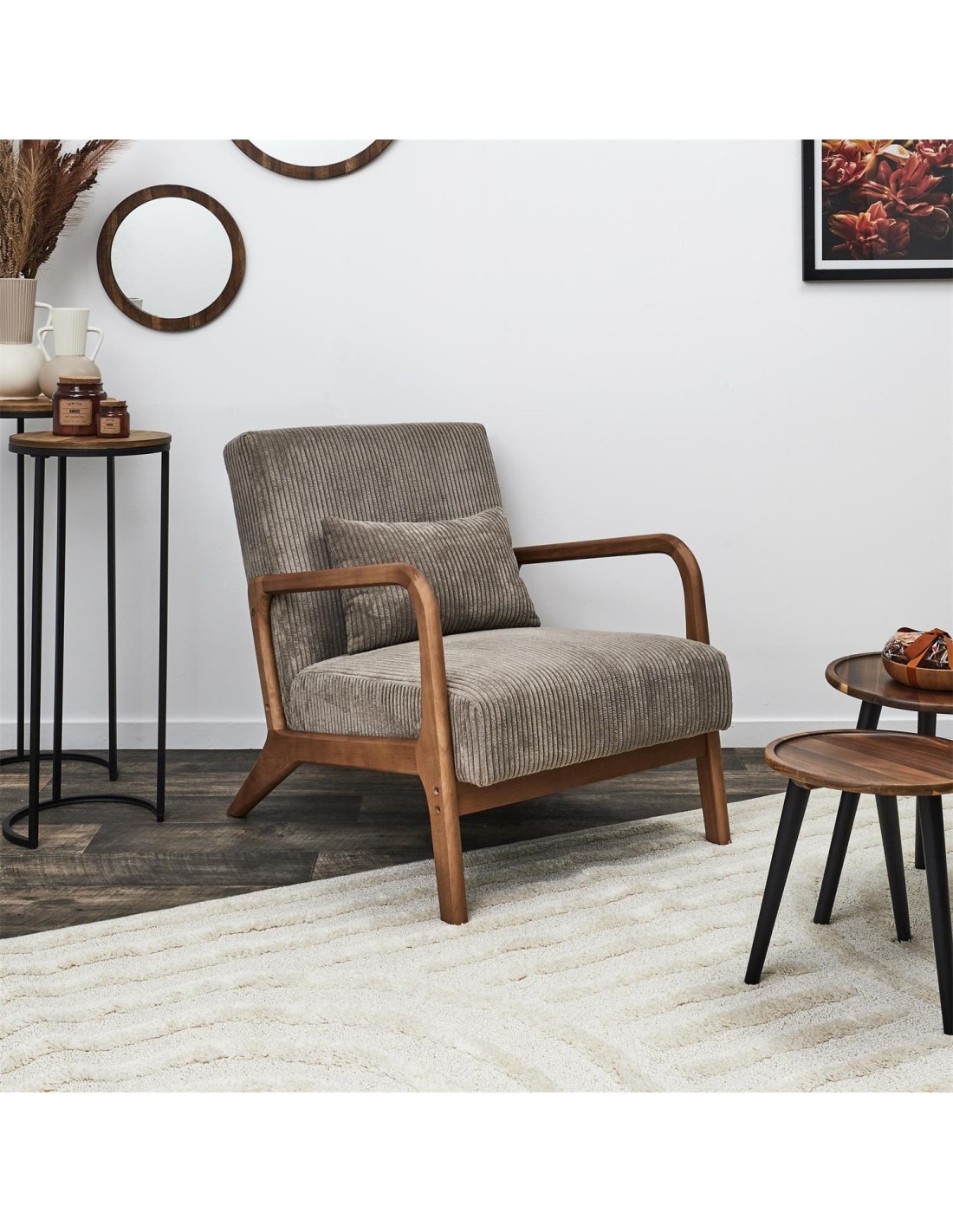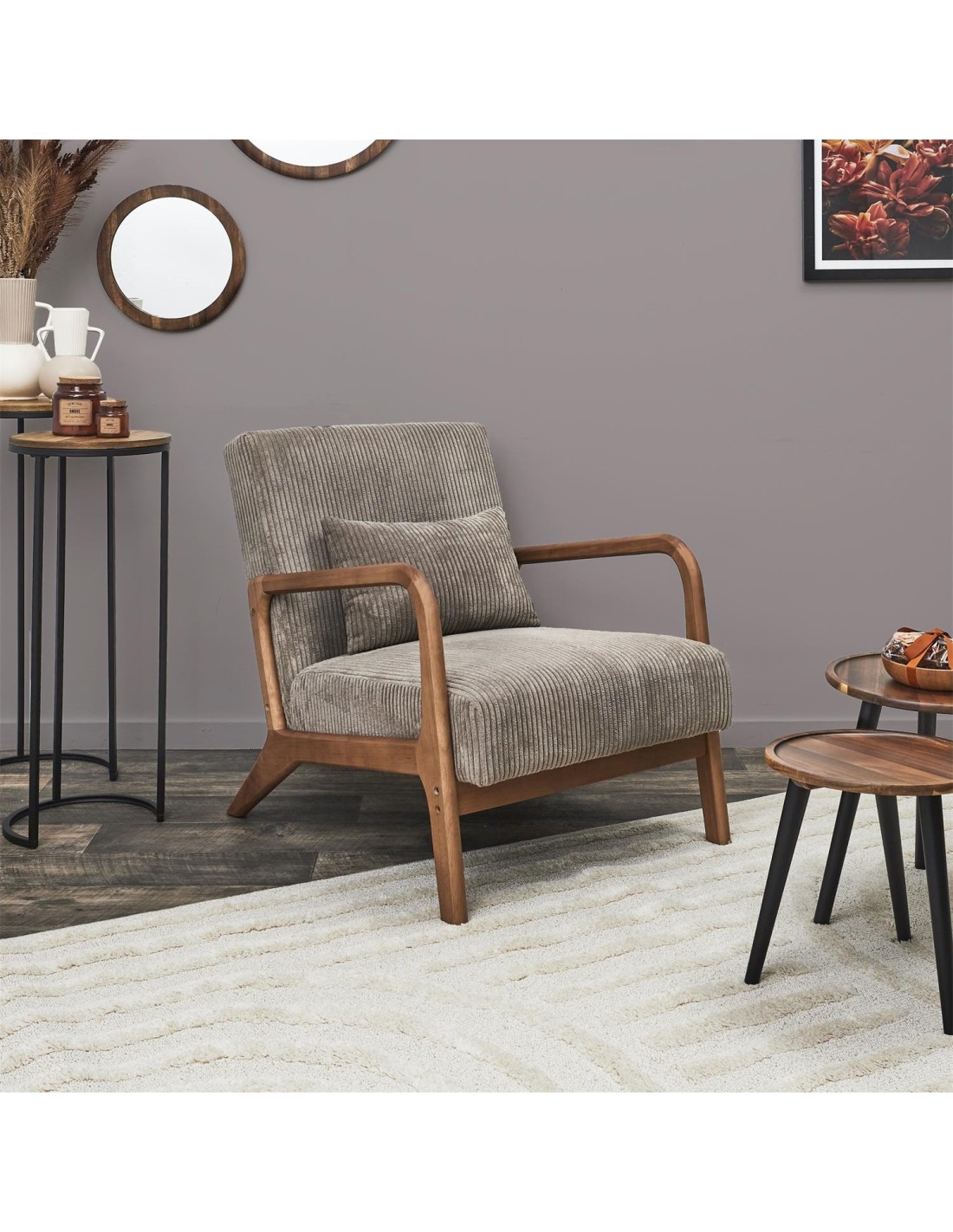 Caractéristiques du Fauteuil De Salon Côtelé Scott Taupe Home Deco Factory :