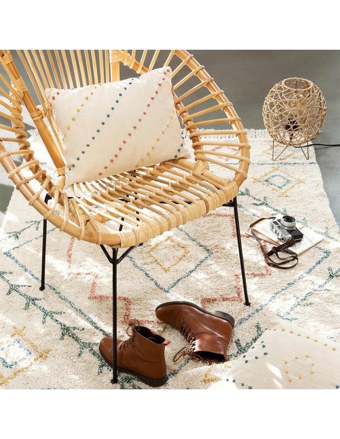 Caractéristiques sur le Fauteuil En Rotin Et Métal Keko Beige Atmosphera :
