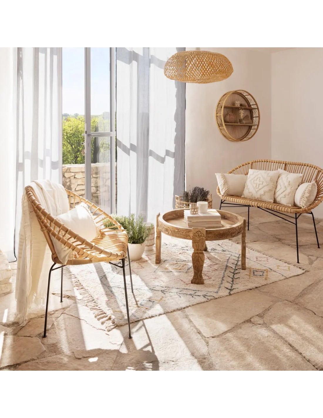 Le Fauteuil En Rotin Et Métal Keko Beige d'Atmosphera est une œuvre d'art en matière de design d'intérieur, offrant une combinaison exquise de matériaux naturels et de finesse moderne. Ce fauteuil n'est pas seulement un siège, mais une invitation à profiter d'un style de vie à la fois détendu et raffiné. Ce fauteuil se distingue par son tissage en rotin soigneusement travaillé, qui évoque une ambiance chaleureuse et naturelle. La couleur beige douce s'harmonise aisément avec diverses palettes de couleurs, apportant une touche de lumière et d'élégance à votre intérieur. La combinaison du rotin avec une structure en métal solide confère au Fauteuil Keko une stabilité et une durabilité exceptionnelles. Ce mélange de matériaux crée un contraste esthétique intéressant, ajoutant une touche contemporaine à l'aspect traditionnel du rotin.