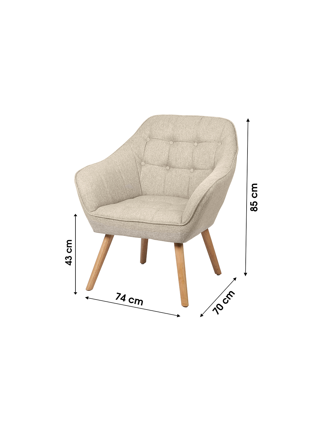 Caractéristiques sur le Fauteuil En Tissu Beige Pied En Bois Home Deco Factory :