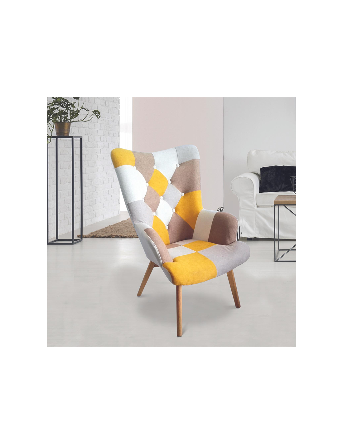 Caractéristiques sur le Fauteuil Helsinki Patchwork Jaune Home Deco Factory :