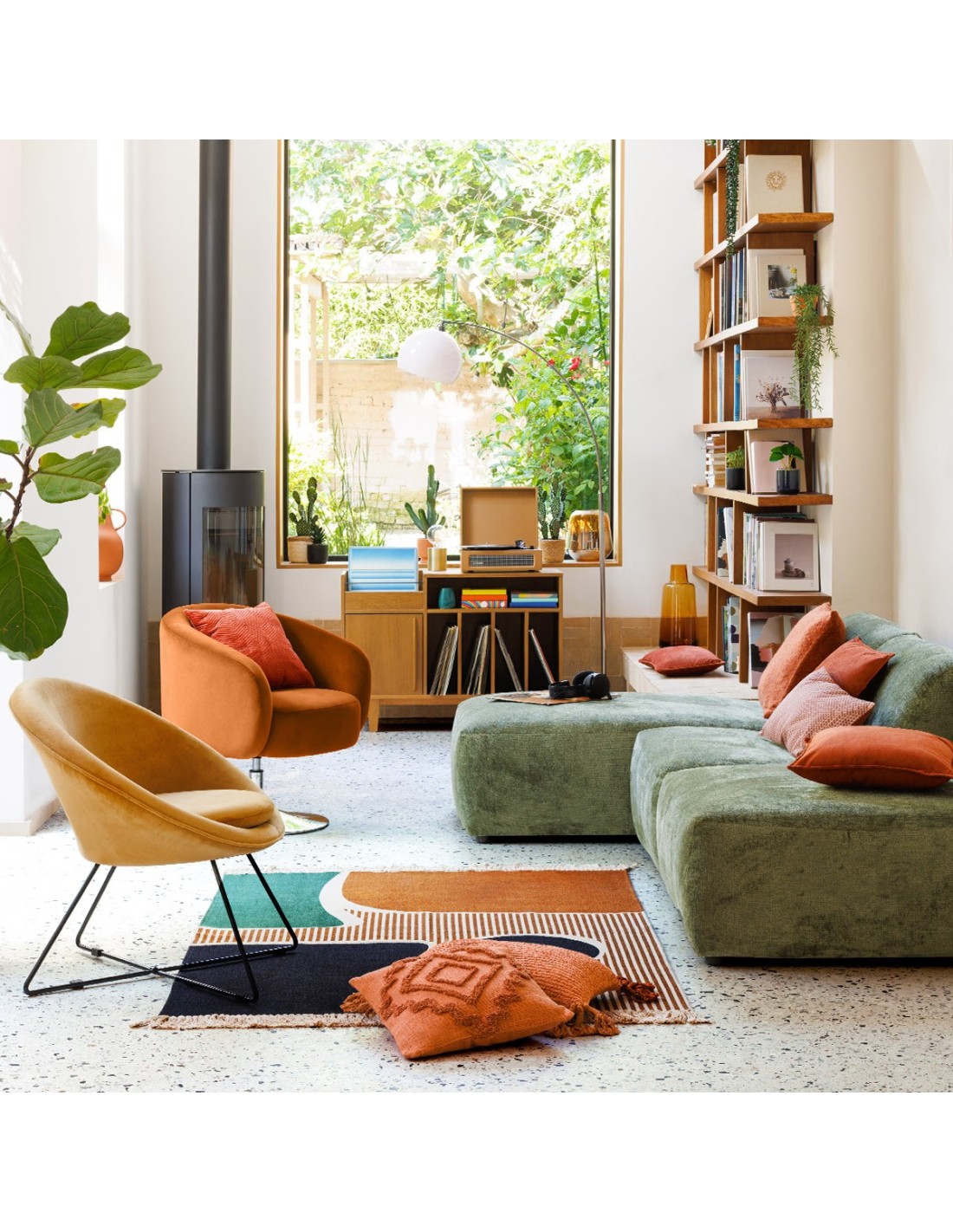 Caractéristiques sur le Fauteuil Pivotant En Velours Edith Ambre Atmosphera :