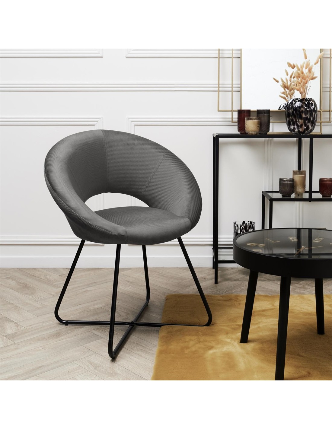 Caractéristiques sur le Fauteuil Rond Velours Côtelé Giulia Gris Home Deco Factory :