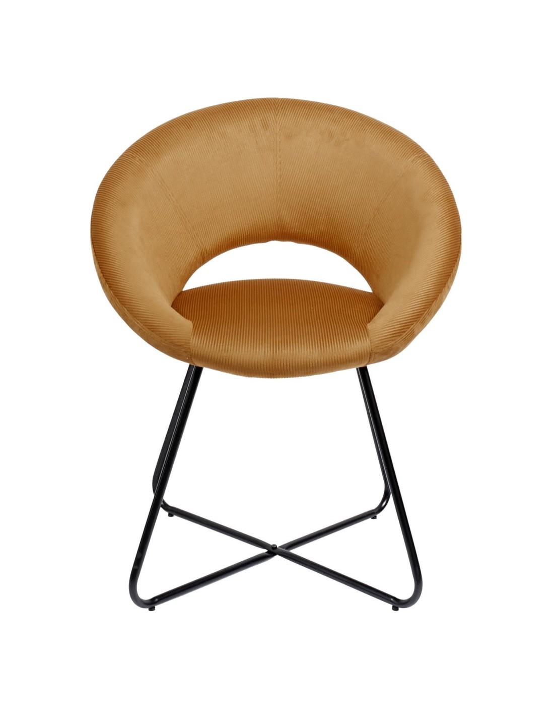 Asseyez-vous avec style, sur ce fauteuil GIULIA rond ! Son élégant revêtement en velours côtelé contraste avec ses 4 pieds métalliques pour rehausser la décoration de votre pièce. Installez-vous confortablement, succès garanti !