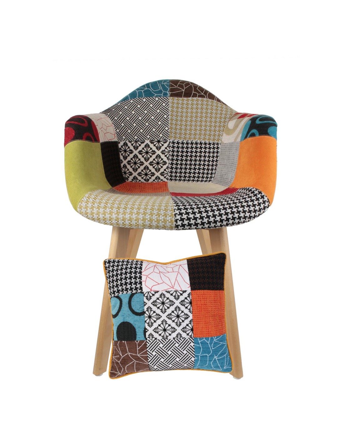 Fauteuil Scandinave Patchwork Avec Coussin Patchwork