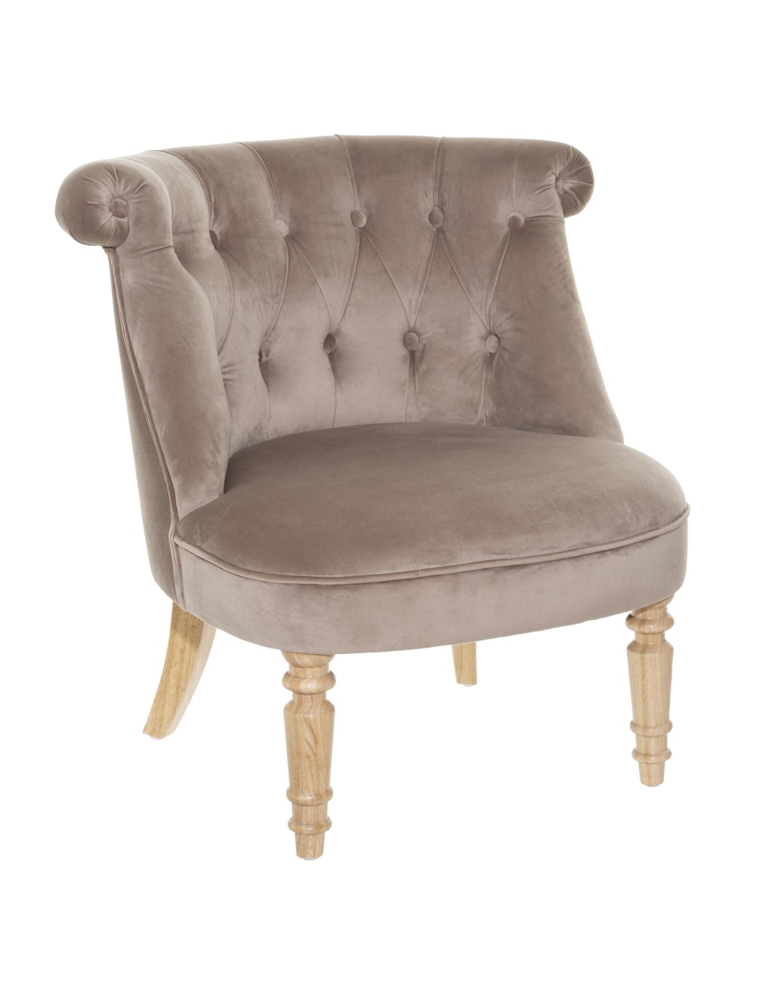 Fauteuil Velours Crapaud Taupe Atmosphera