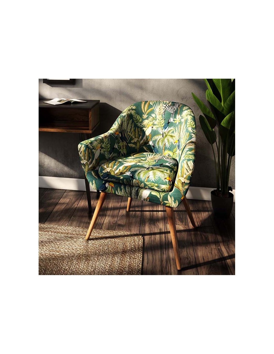 Le Fauteuil Sango Velours Jungle, pour amener la jungle elle-même dans votre salon. Son assise confortable et son motif original éclabousseront votre entourage.