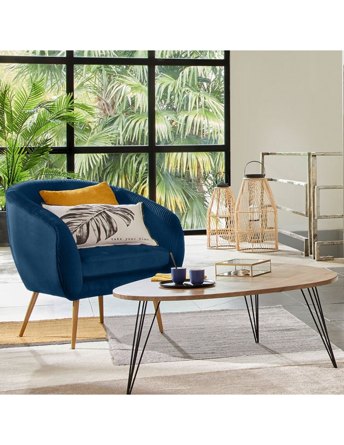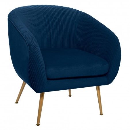 Fauteuil Velours Plisse Bleu Solaro Atmosphera