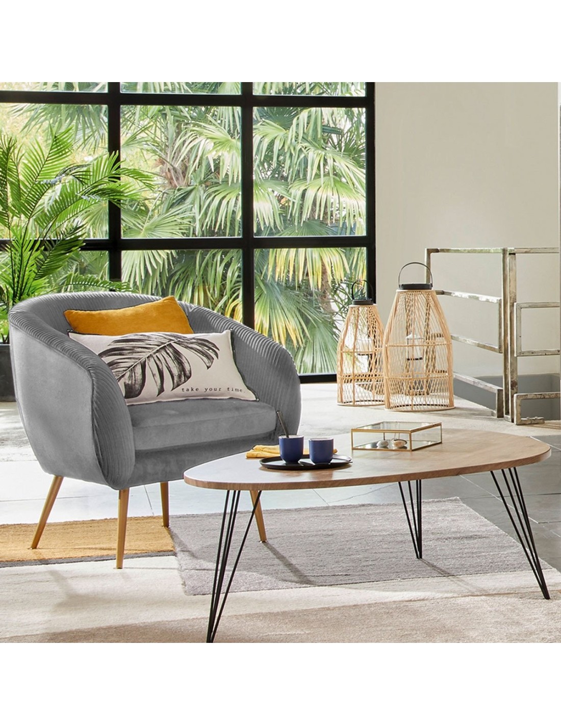 Fauteuil Velours Plisse Gris Solaro Atmosphera