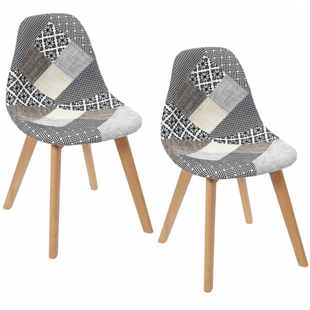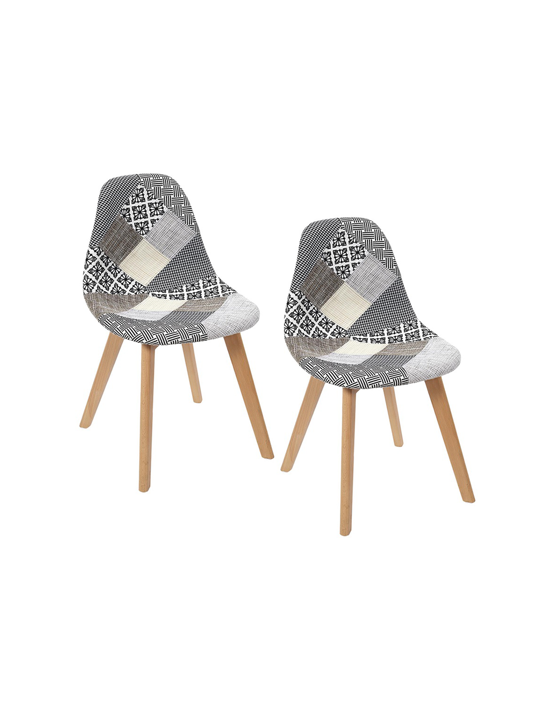 Ce lot de 2 chaises gris et style patchwork apportera beaucoup de chaleur et de lumière à votre intérieur. Grâce à son style il s'intègre facilement dans votre intérieur.