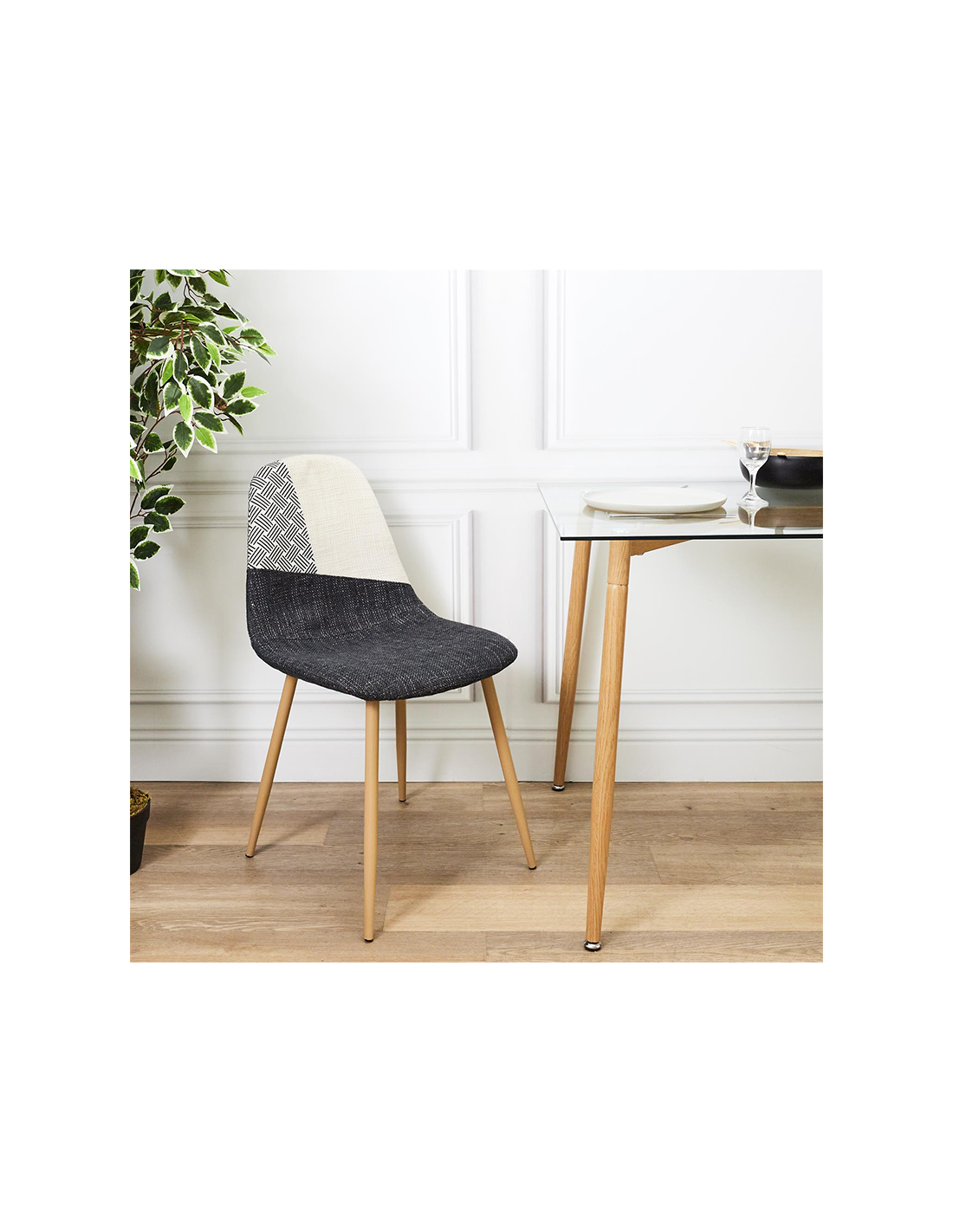 Caractéristiques sur le Lot De 2 Chaises First Patchwork Noir Blanc Home Deco Factory :