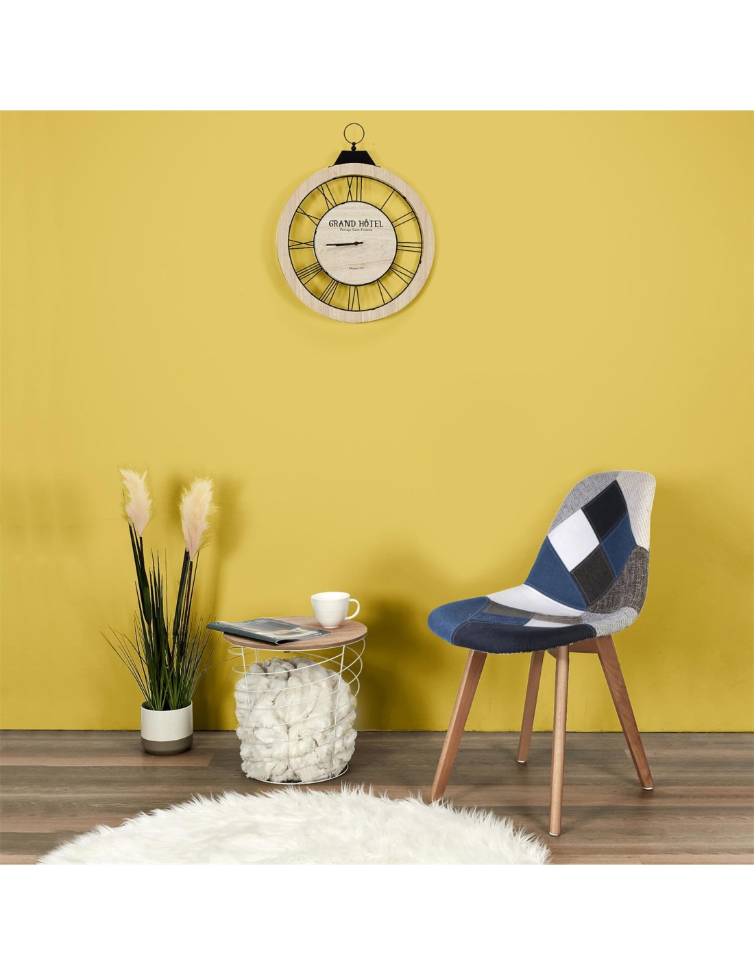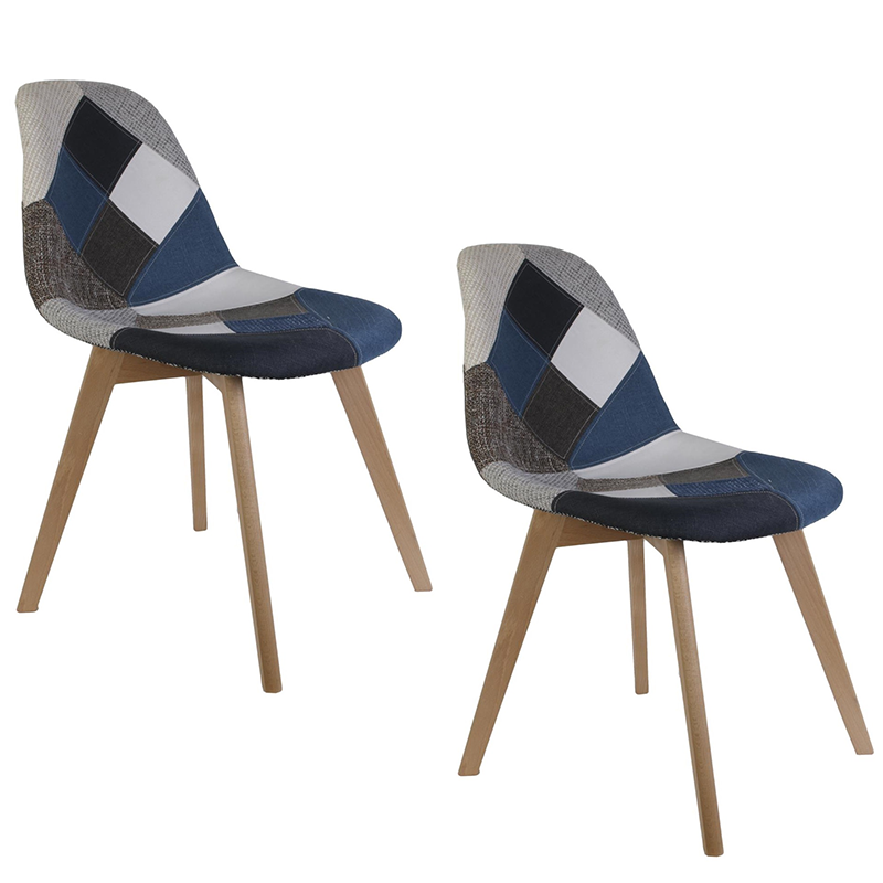 Caractéristiques sur le Lot de 2 Chaises Patchwork Bleu Gris Home Deco Factory :