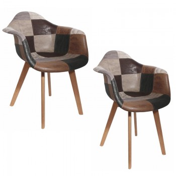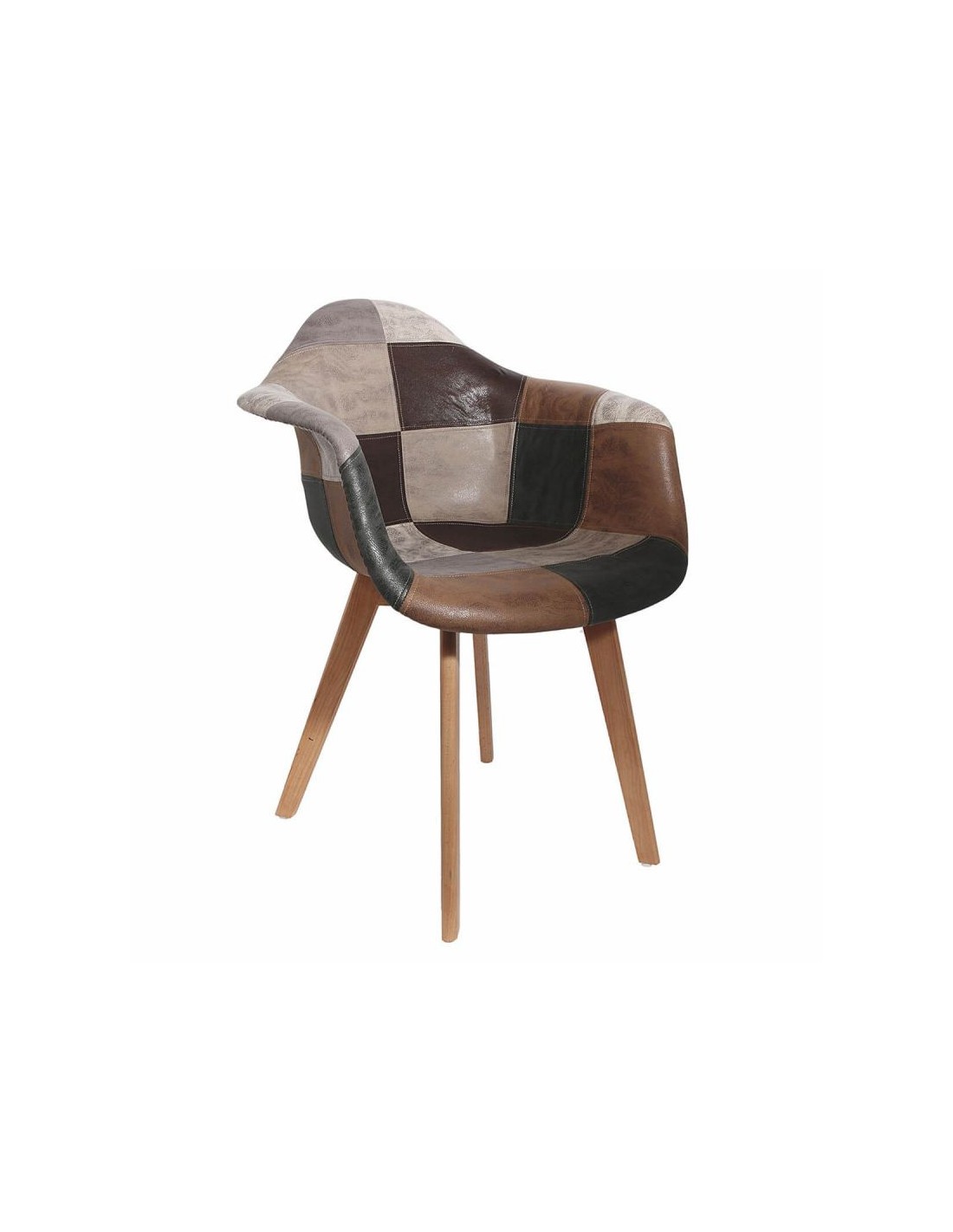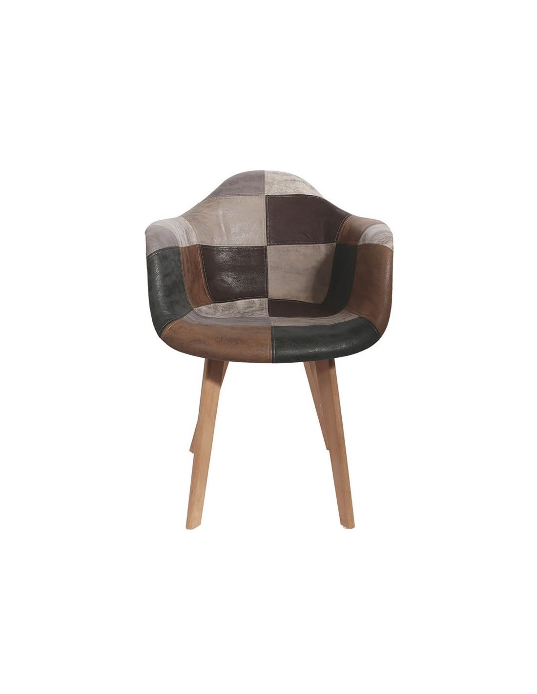 Optez pour un design qui ne passera pas inaperçu ! Non content d'offrir un revêtement doux au toucher garantissant un confort d'assise optimal, ce fauteuil possède un motif patchwork ancien des plus original. Piétement en bois massif finition naturelle. Revêtement assise et dossier en tissu aspect cuir, motif patchwork.