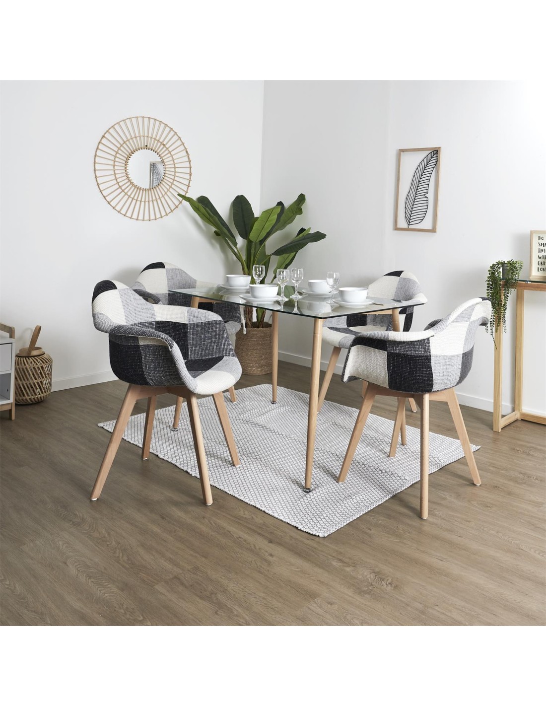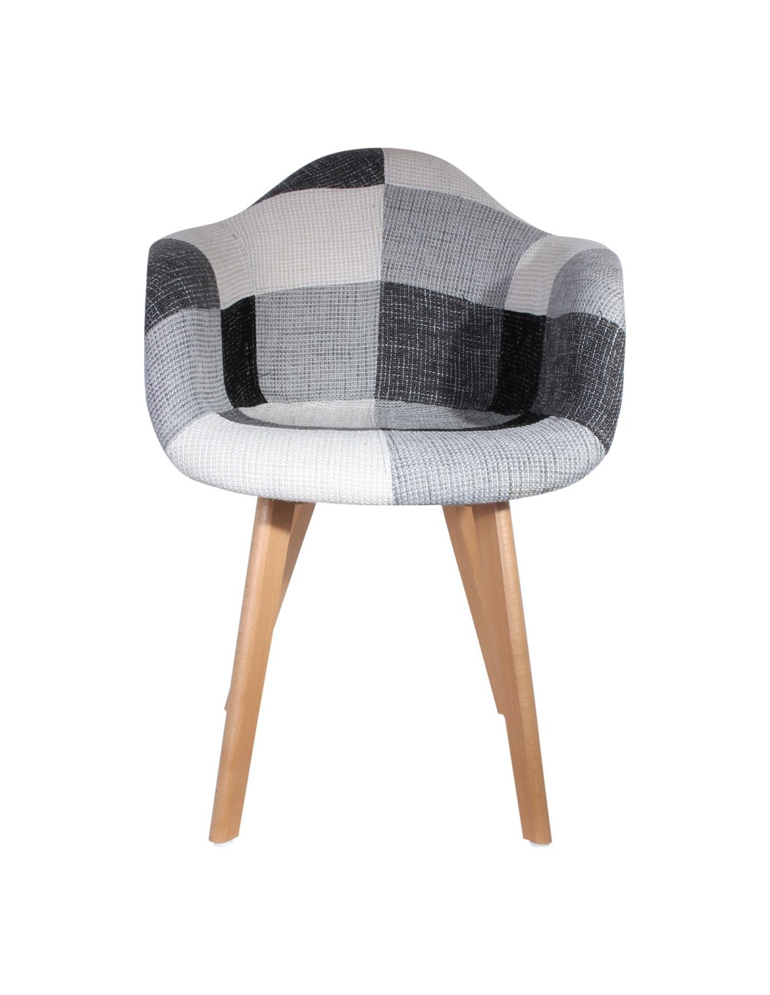 Un modèle de fauteuil de type scandinave qui saura faire mouche grâce à son revêtement en tissu à motif patchwork très élégant. L'assise est montée sur 4 pieds en mois massif, donnant à l'ensemble un côté design. Piétement en hêtre massif finition naturelle. Assise et dossier revêtus d'un tissu motif patchwork coloris bleu clair.