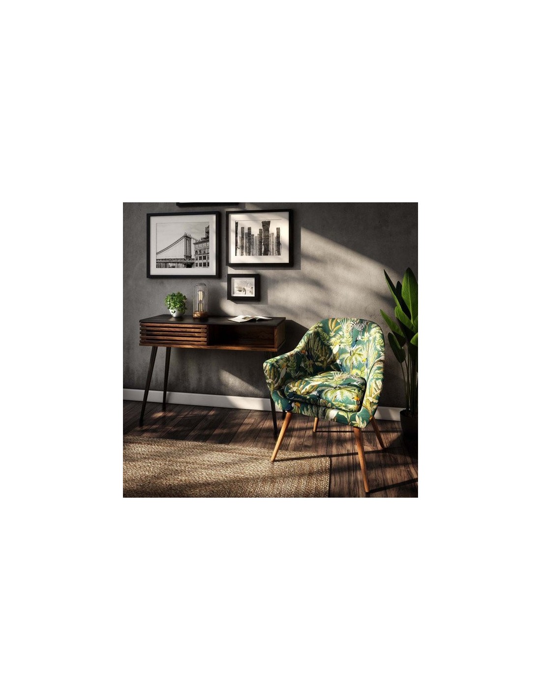 Avec son imprimé jungle, le fauteuil "Sango" apportera une jolie note de nature sauvage à votre décoration.