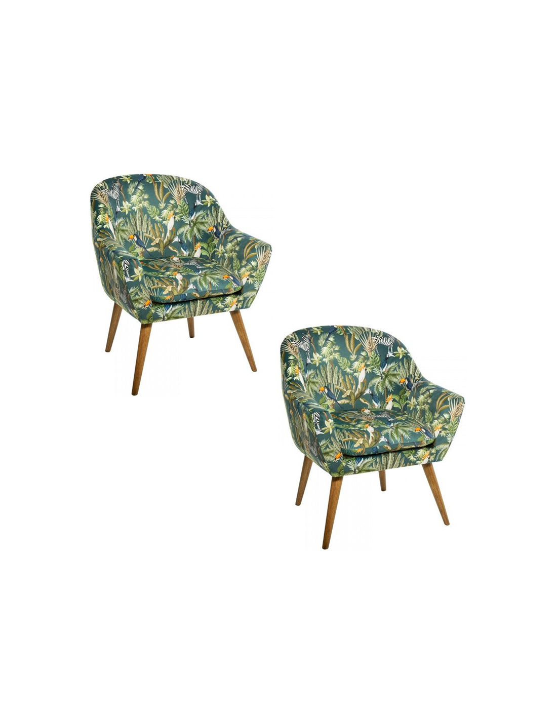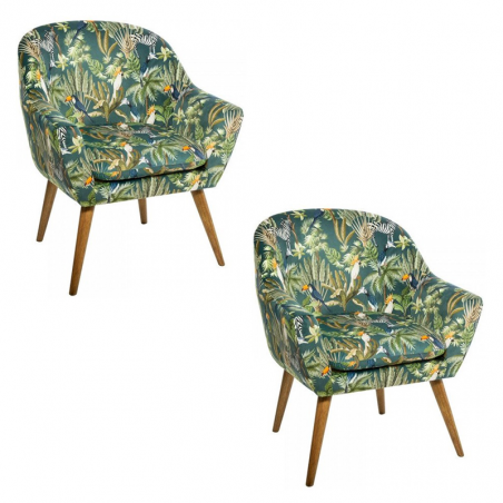 Ce lot de 2 Fauteuils SANGO Velours Jungle sont là pour amener la jungle elle-même dans votre salon. Son assise confortable et son motif original éclabousseront votre entourage.