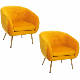 Ce lot de 2 fauteuils velours Karl Bleu tout en rondeur s'intégrera à votre intérieur aux tendances vintage. D'un design tout en courbe en velours avec sa structure en métal couleur dorée, ce fauteuil ne passera pas inaperçu.