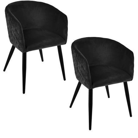 Notre ensemble de 2 chaises de salon ajoutera style et élégance à votre salle à manger. Parfaites pour toutes les occasions, elles présentent un rembourrage en velours noir et des pieds en métal. Pour recevoir vos invités ou simplement vous détendre à la maison, ces chaises répondront à tous vos besoins. Solides, élégantes et confortables, ces chaises de salle à manger sont fabriquées en métal et recouvertes de velours. Ces chaises ajouteront une touche d'élégance à votre décoration intérieure. Cet ensemble de 2 chaises de salon sera un ajout élégant à votre salle à manger, votre salon ou votre patio. Le rembourrage en velours et la couleur noire complètent à merveille ses pieds en métal. Installez-vous confortablement avec vos amis et votre famille pour recevoir vos invités ou vous détendre à la maison.