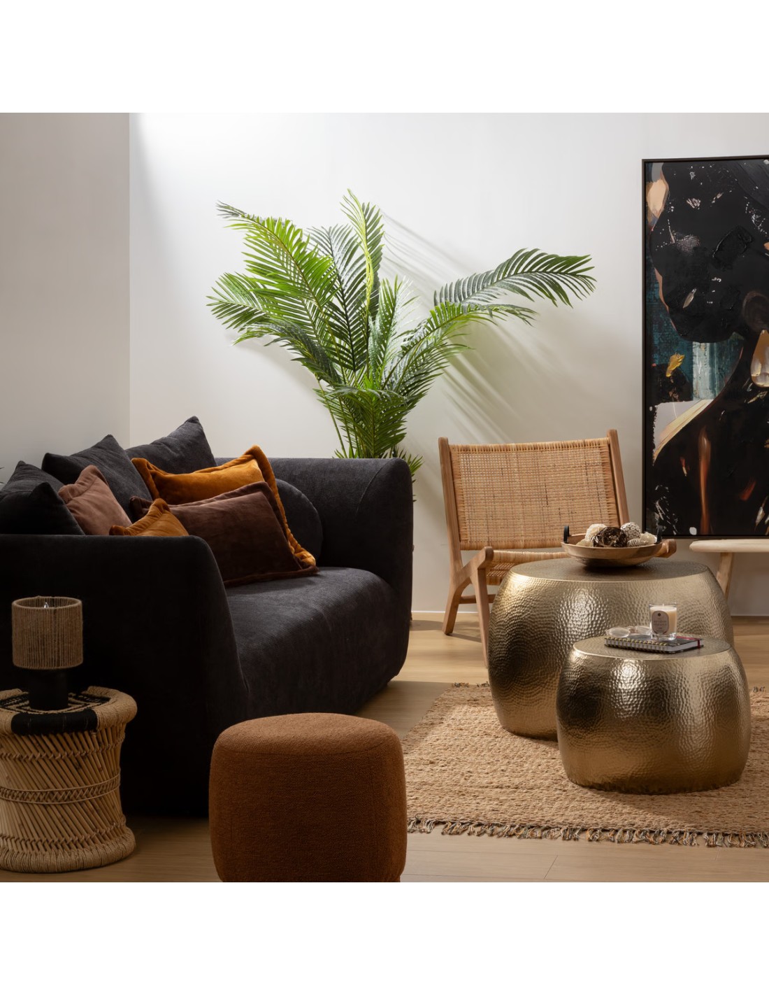 Infusez votre espace de vie avec une touche de luxe grâce au Lot de 2 Tables Basses Issam Doré de Atmosphera. Conçues pour captiver et fonctionner ensemble ou séparément, ces tables offrent une polyvalence exceptionnelle et un style éblouissant qui enrichira n'importe quel intérieur contemporain ou classique. Le fini doré brillant et les lignes épurées apportent une élégance instantanée à votre salon, rehaussant l'environnement avec une touche de glamour. Arrangées ensemble pour un effet de superposition dynamique ou utilisées séparément pour une cohérence dans tout l'espace, ces tables s'adaptent à vos besoins et préférences en matière de décoration. Leurs dimensions sont idéalement proportionnées pour s'adapter à des espaces variés, offrant suffisamment d'espace pour vos boissons, livres, et éléments décoratifs sans encombrer la pièce. Ce duo de tables est la solution parfaite pour ceux qui cherchent à allier fonctionnalité et design raffiné. Elles offrent une flexibilité d'agencement tout en ajoutant une note de sophistication à votre décor, faisant de chaque arrangement un point focal de conversation.