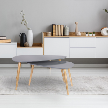 Les tables sont simples mais élégantes, idéales pour votre salon. Ajoutez une touche de classe à votre salon avec cet ensemble de 2 tables gigognes. Fabriquées en bois, ces tables présentent une couleur grise, ce qui en fait un ajout parfait à tout décor contemporain. De plus, elles sont parfaites pour les petits espaces car elles peuvent être facilement pliées ou emboîtées lorsqu'elles ne sont pas utilisées. Ce magnifique ensemble de tables gigognes offre une alternative élégante et fonctionnelle, ajoutant de riches détails à tout espace de vie. La finition grise du bois apporte de la chaleur et contraste subtilement avec la tapisserie grise de votre canapé. Ces tables uniques sont parfaites pour exposer des plantes en pot au sommet ou des objets décoratifs tels que des livres.