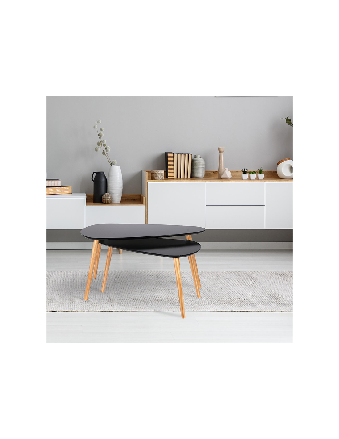 Un meuble chic qui apportera une touche de style moderne à votre espace. Ces tables gigognes ont des finitions supérieures noires, et peuvent être associées ou séparées selon vos besoins. Les tables gigognes simplifient la décoration, car elles se présentent sous la forme d'un ensemble de deux pièces qui peuvent être emboîtées l'une dans l'autre. Il est ainsi plus facile de les ranger lorsqu'elles ne sont pas nécessaires, tout en conservant un design minimaliste et élégant dans n'importe quelle maison ou bureau. Ces tables gigognes sont un ajout parfait à n'importe quel espace. Le design est moderne et simple, mais crée une belle touche dans votre maison avec son style unique.