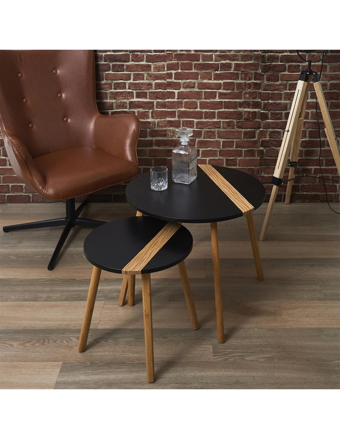 Caractéristiques sur le Lot De 2 Tables Gigognes Relief Noire Home Deco Factory :