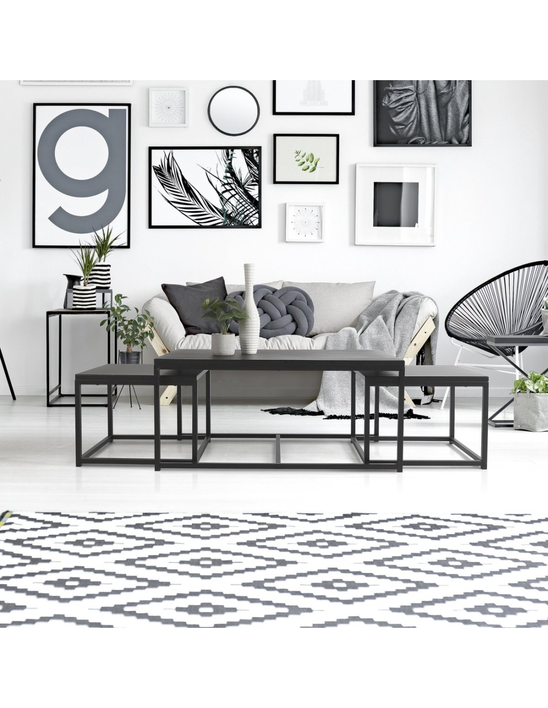 Caractéristiques sur le Lot De 3 Tables Basse En Métal Empilables Noir Atmosphera :