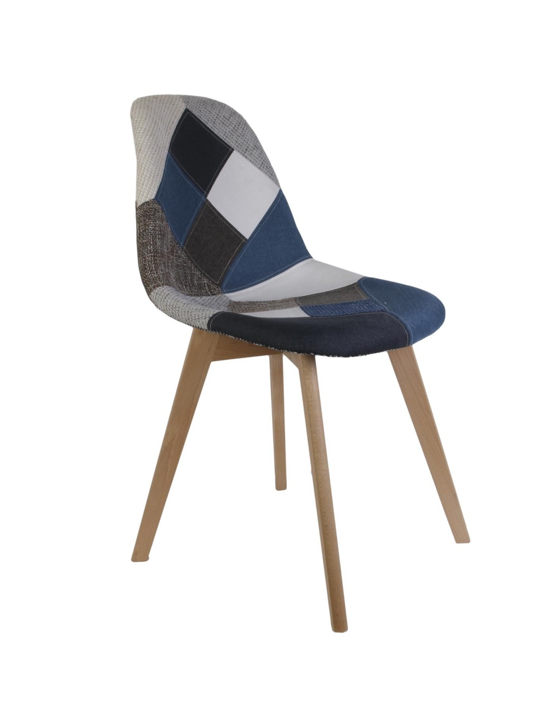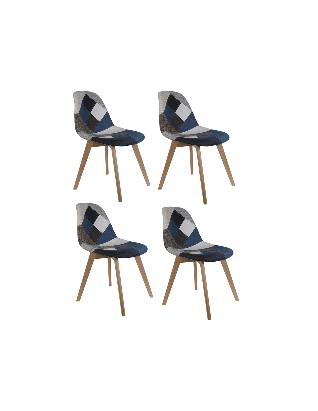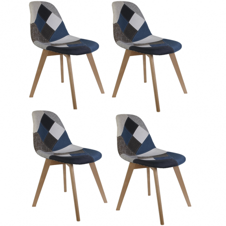 Caractéristiques sur le Lot de 4 Chaises Patchwork Bleu Gris Home Deco Factory :