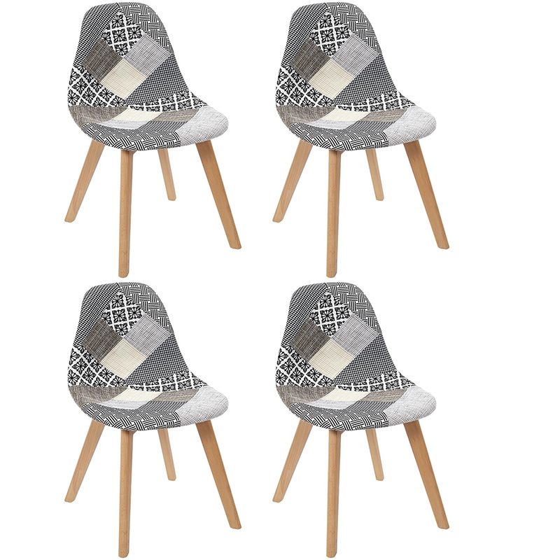 Ce lot de 4 chaises gris et style patchwork apportera beaucoup de chaleur et de lumière à votre intérieur. Grâce à son style il s'intègre facilement dans votre intérieur.