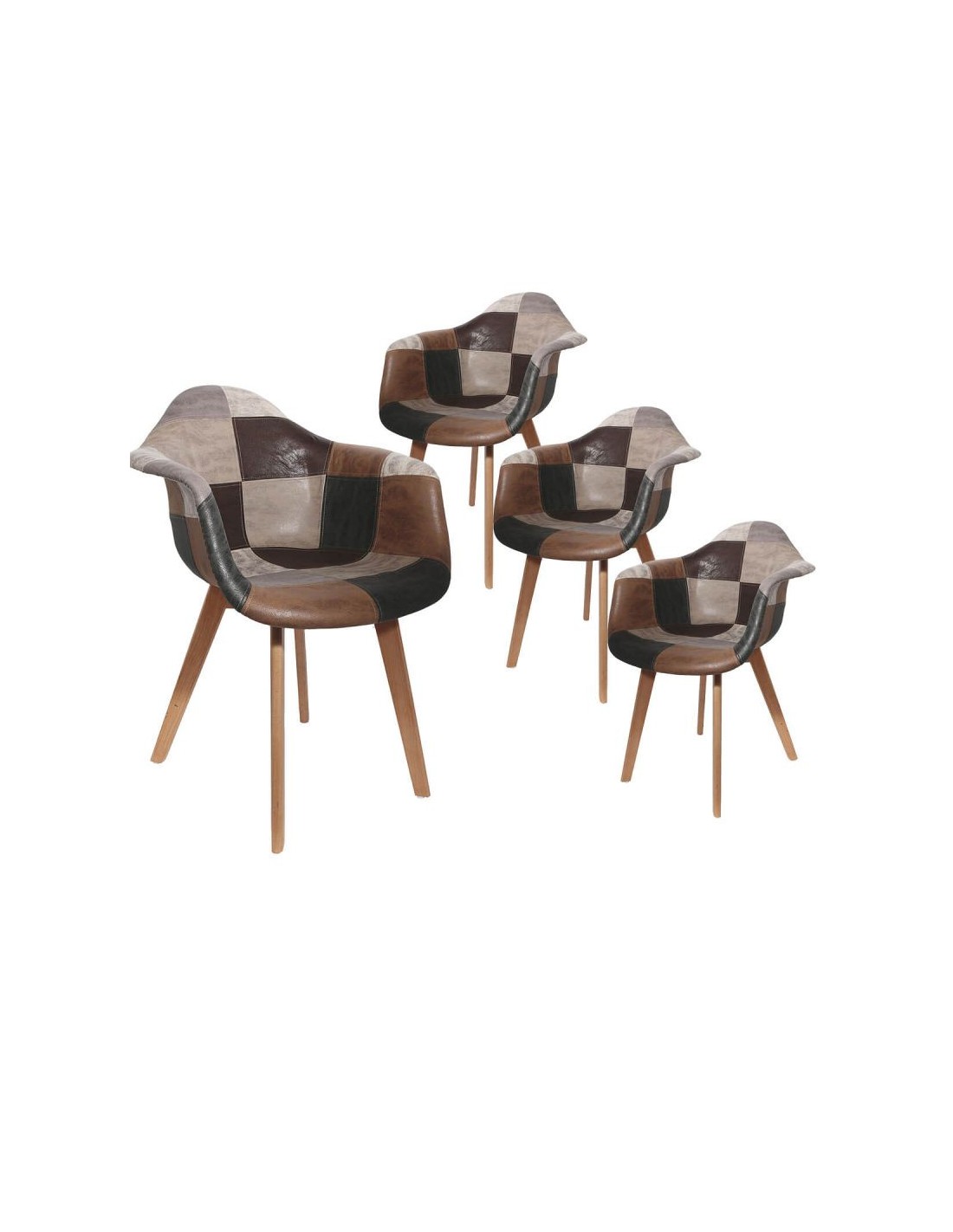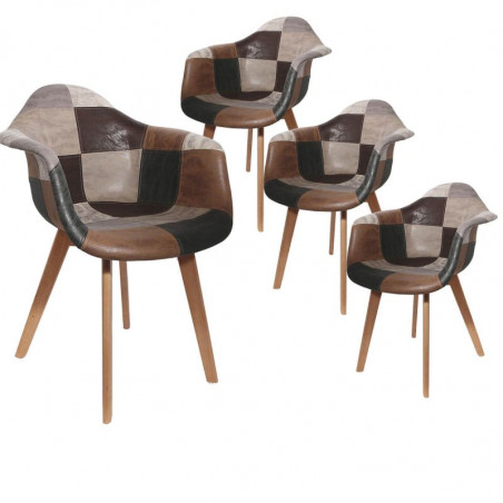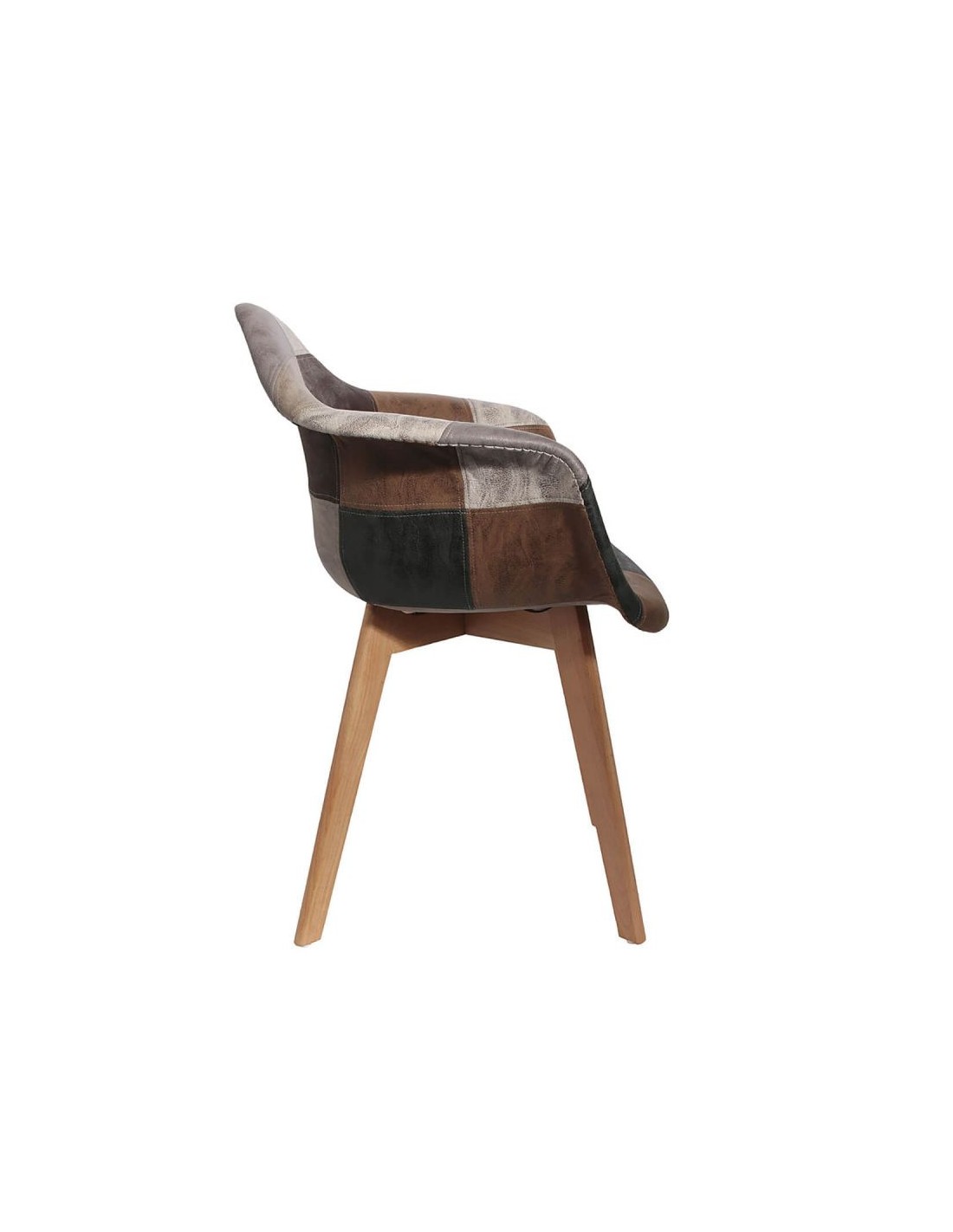 Optez pour un design qui ne passera pas inaperçu ! Non content d'offrir un revêtement doux au toucher garantissant un confort d'assise optimal, ce fauteuil possède un motif patchwork ancien des plus original. Piétement en bois massif finition naturelle. Revêtement assise et dossier en tissu aspect cuir, motif patchwork.