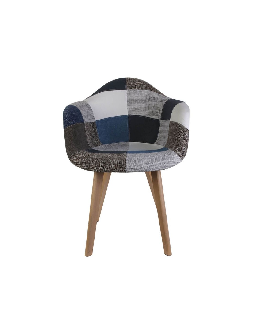 Ce fauteuil patchwork gris bleu apportera une touche de décoration non négligeable à votre intérieur. Rehaussez la décoration de votre salon avec le design fun de ce fauteuil patchwork construit sur 4 beaux pieds en bois brut !